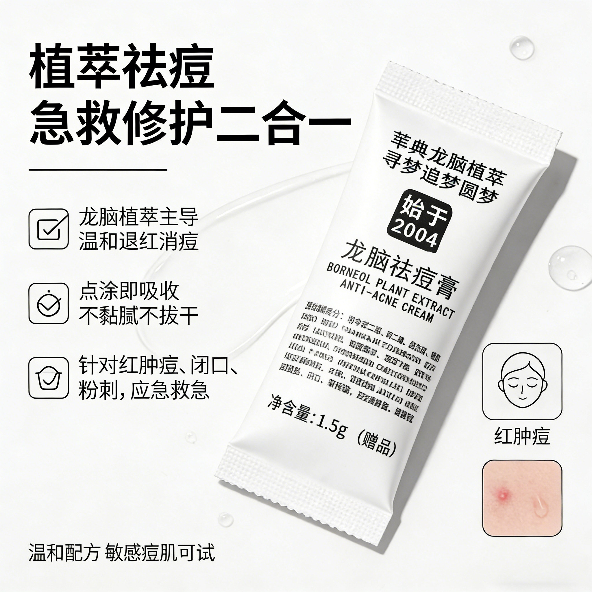 荘典龙脑祛痘膏试用装 先试后买23年老品牌 针对红肿痘痘闭口粉刺 - 荘典旗舰店