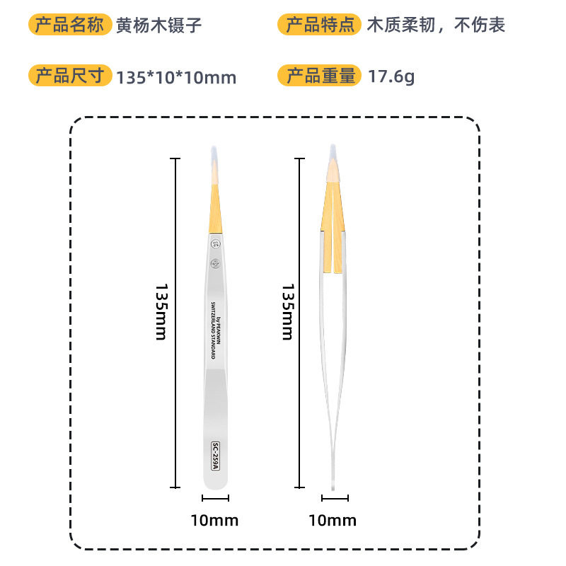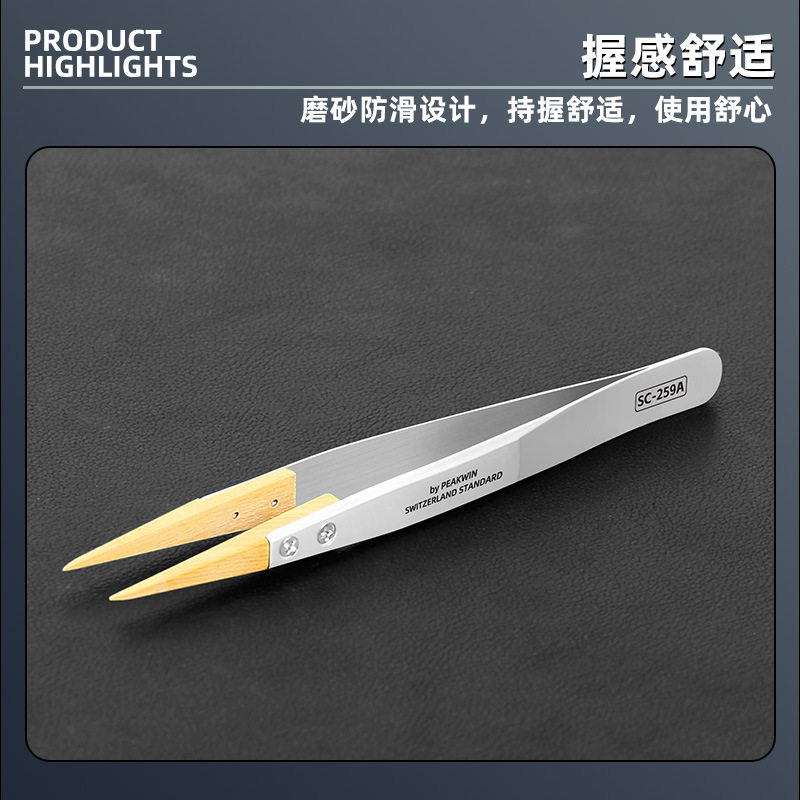 黄杨木镊子精密防磁镊子ESD259不锈钢尖镊子绝缘不伤零件修表工具 - 繁汝舰官店