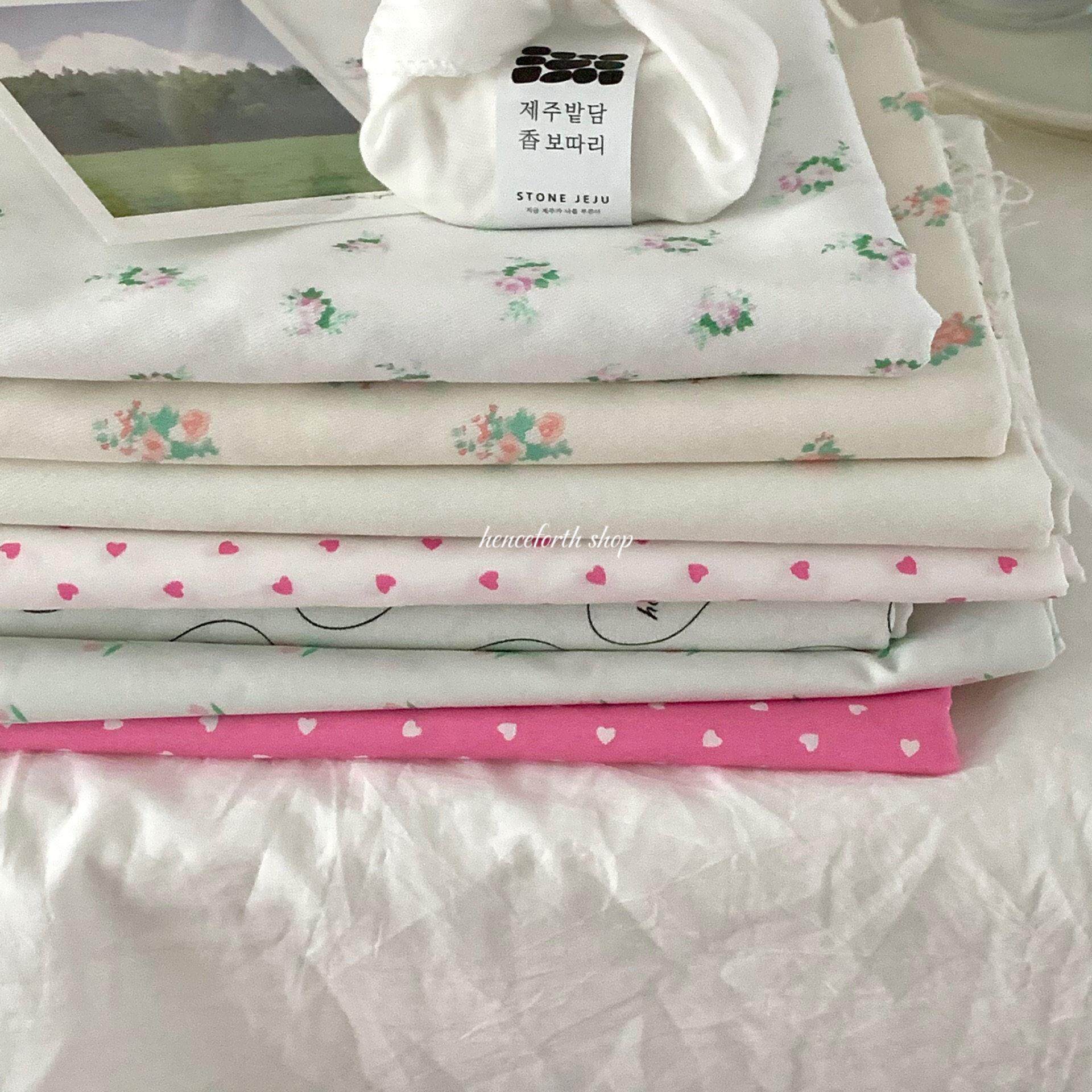 fabric 粉绿小郁金香纯棉印花面料40支DIY手工布料 - 北帝琦博裕鑫专卖店