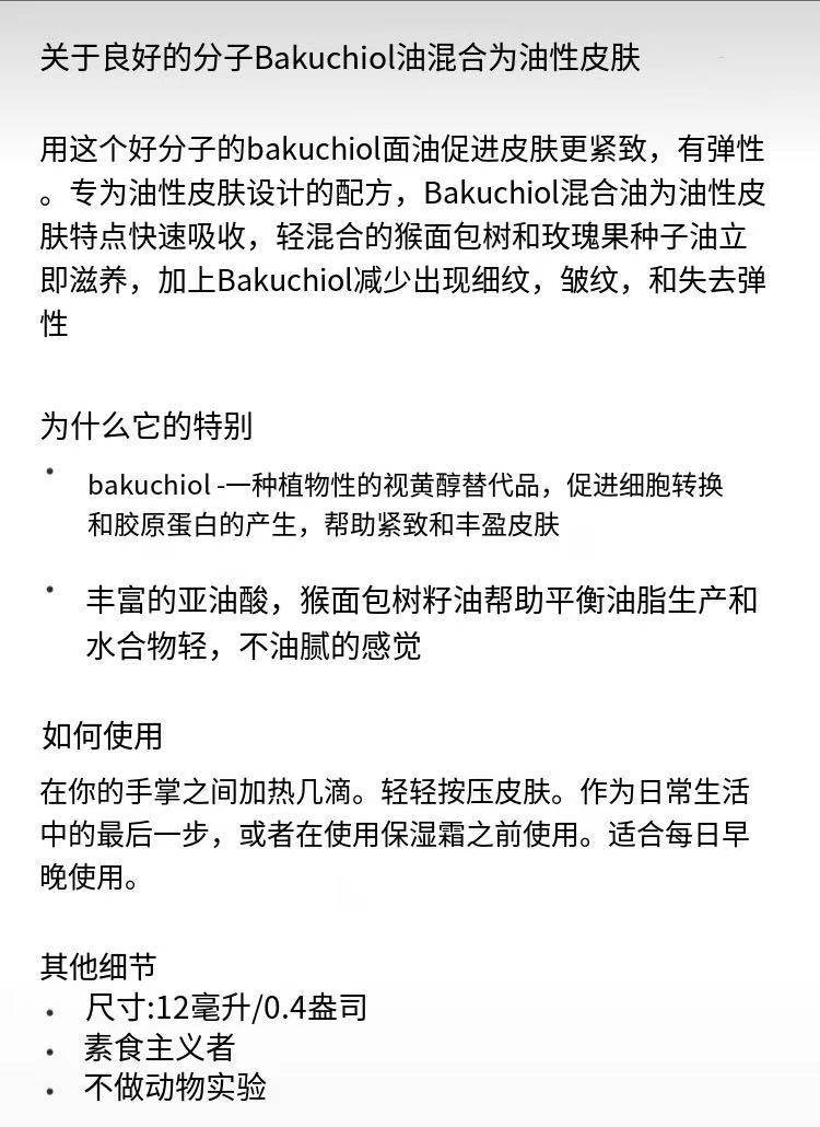 【现货】GM补骨酯酚精华油-油皮 12ml molecules 抗老淡纹紧致 - 乐心心海外购