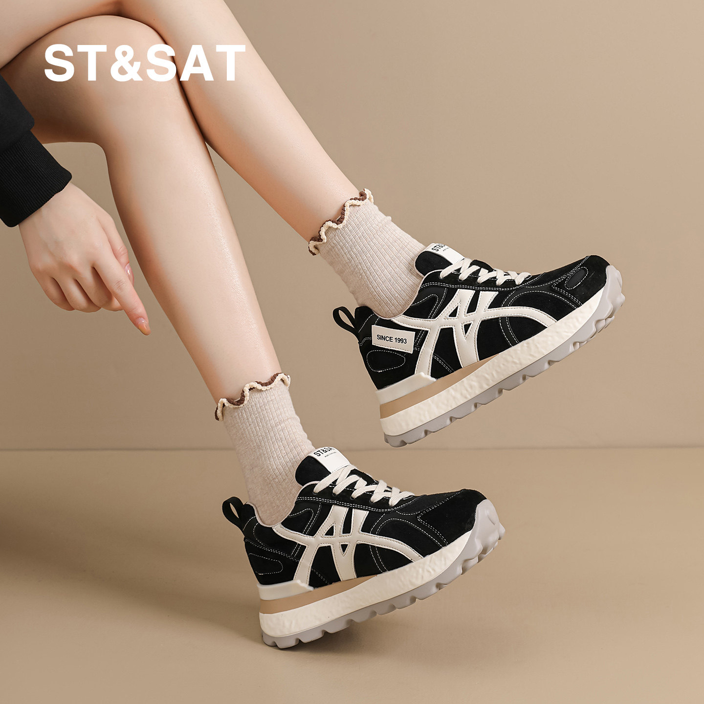 星期六踩屎感内增高运动鞋女2026春季新款小个子7公分厚底德训鞋 - STSAT星期六优诗悦专卖店