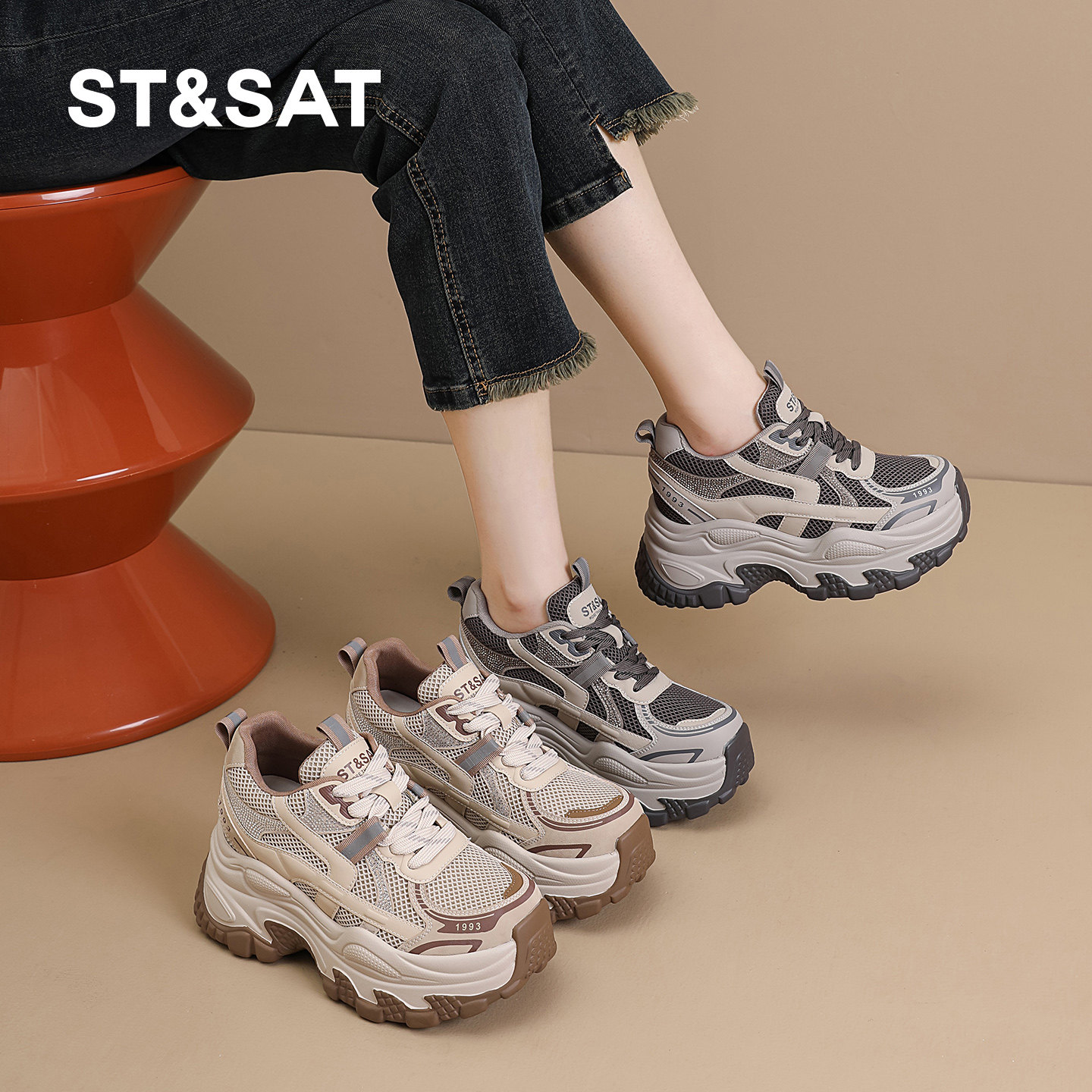 星期六内增高老爹鞋女2026春季新款网面透气运动鞋百搭休闲鞋潮鞋 - STSAT星期六优诗悦专卖店