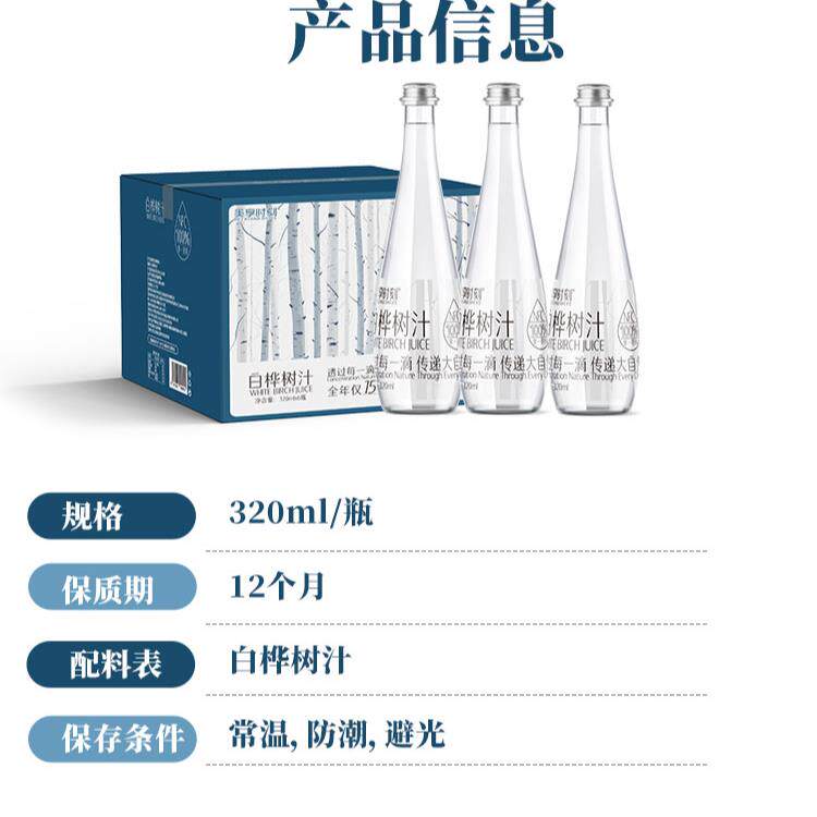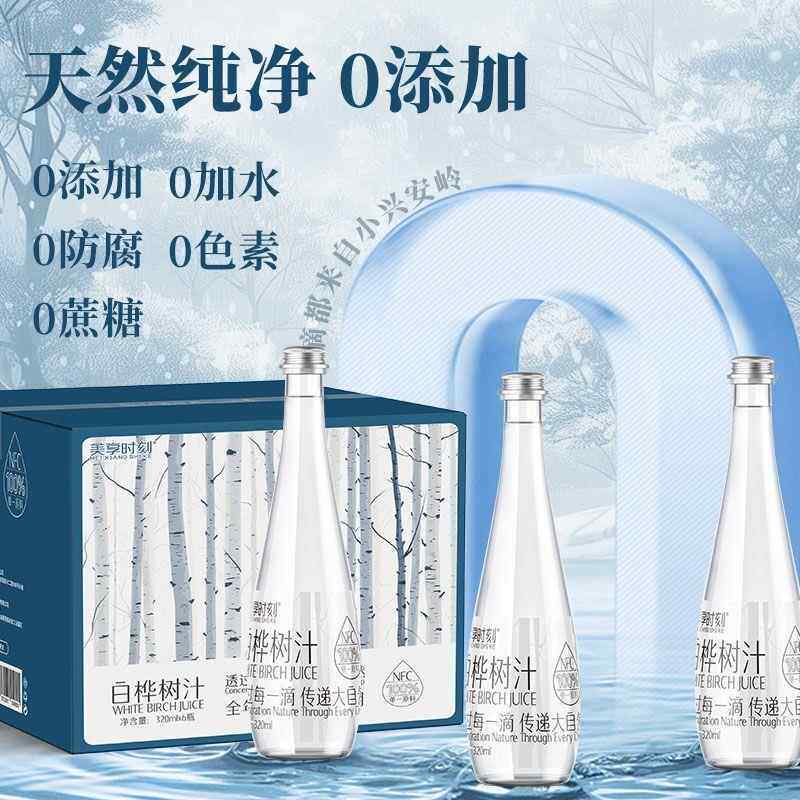 美享时刻白桦树汁原汁320ml*6瓶白桦汁100%原液小兴安岭植物饮料 - 绿扰扰旗舰店