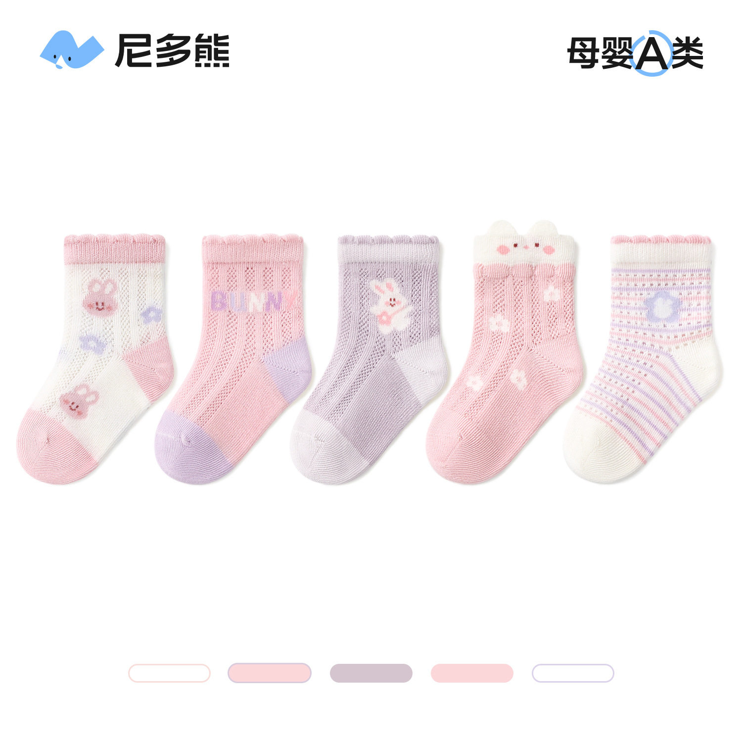 尼多熊宝宝袜子夏季薄款棉袜女宝无骨透气网眼袜女童袜a类婴儿袜 - 植木儿童棉品