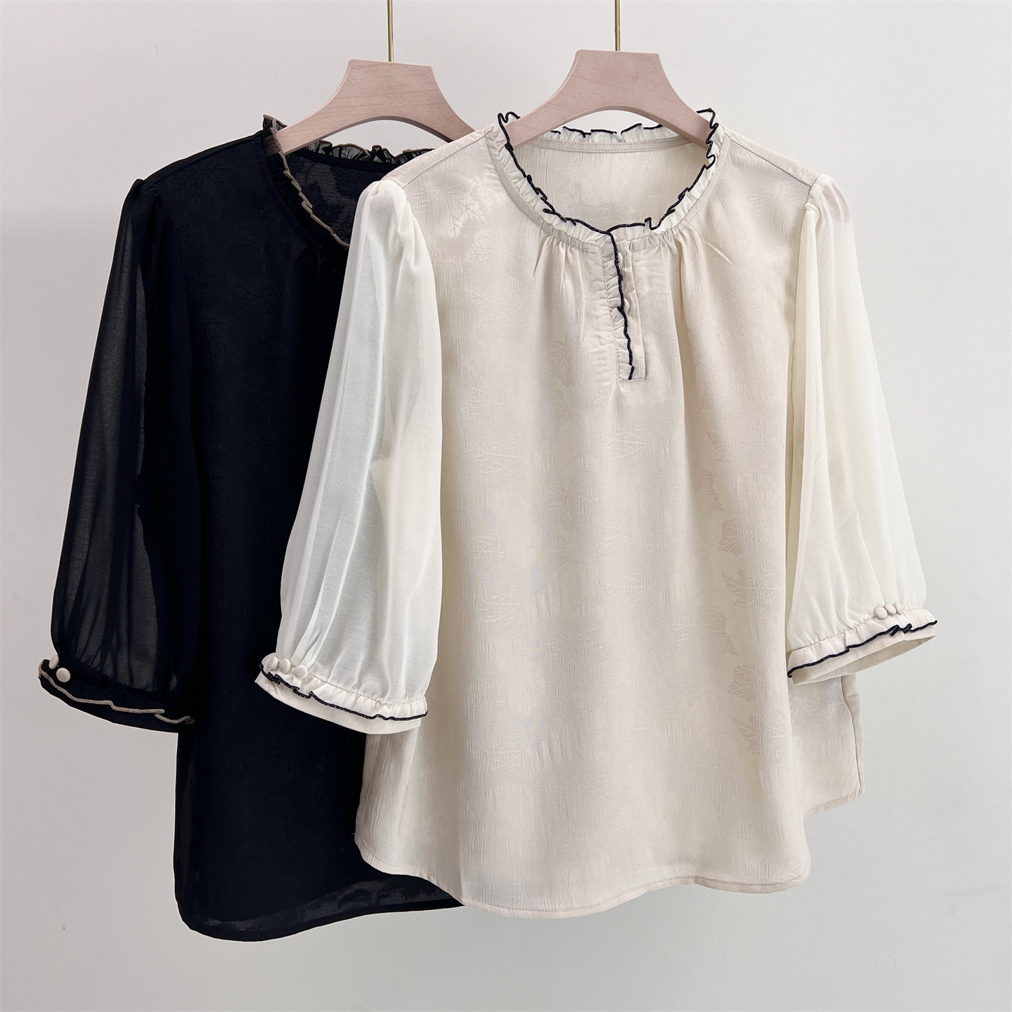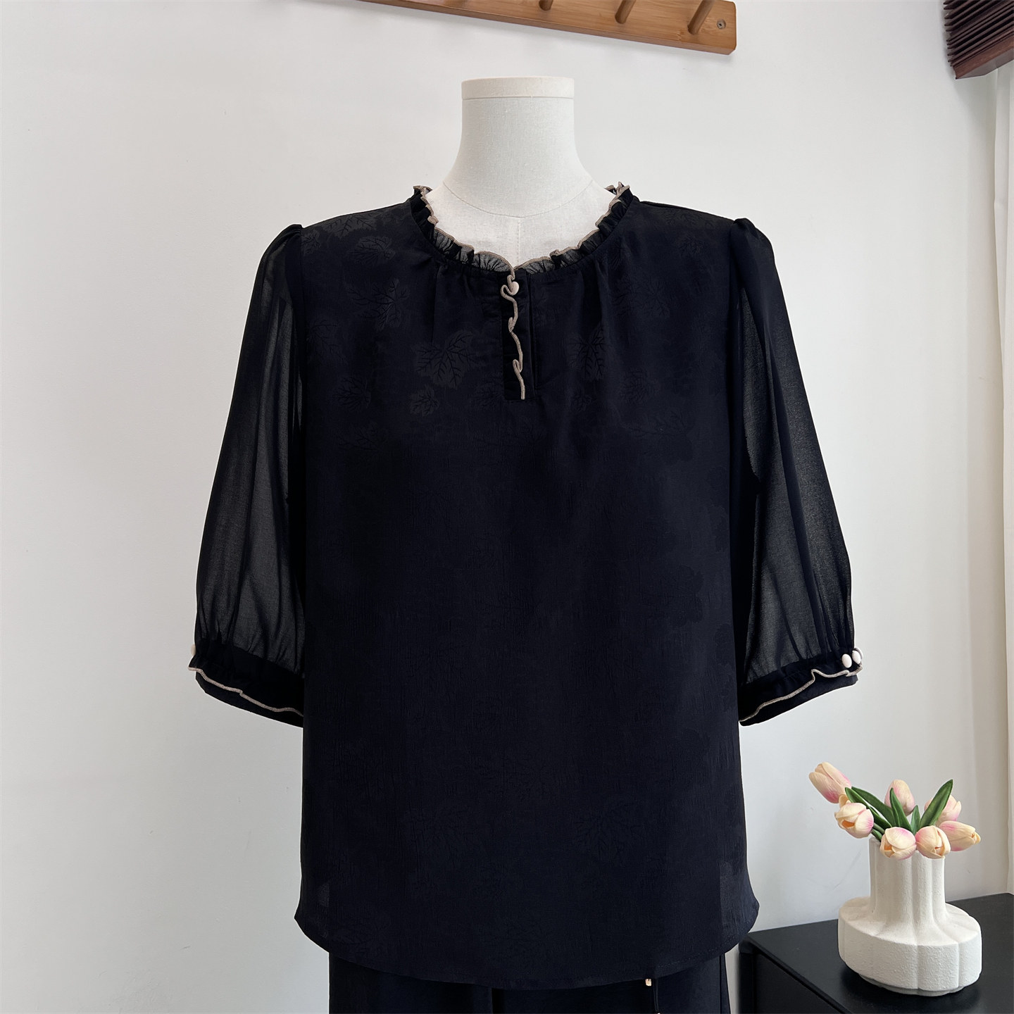 2026夏季新款妈妈装仿真丝短袖T恤圆领小衫中老年女奶奶雪纺上衣 - 郭贵人嘉兴毛衫 零批