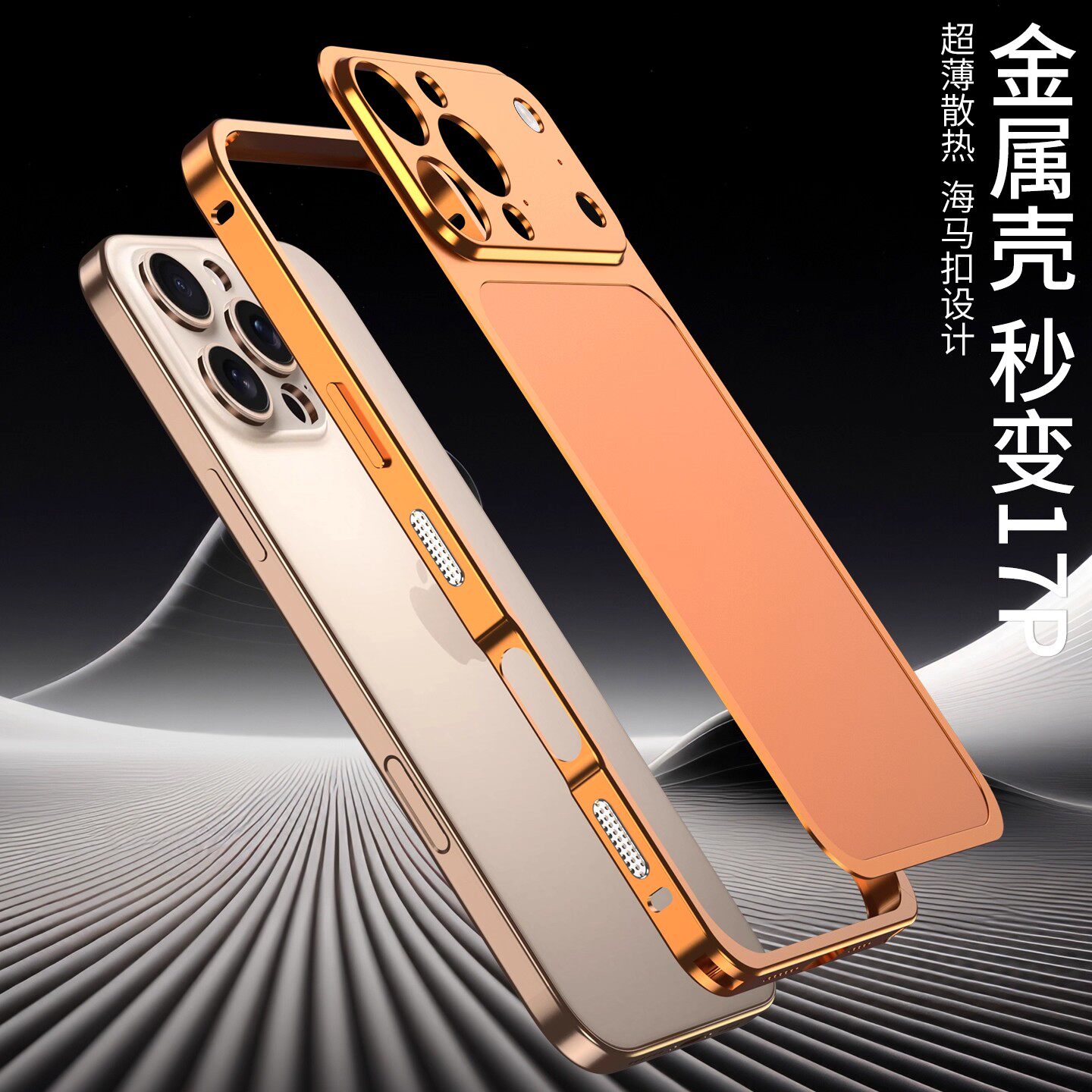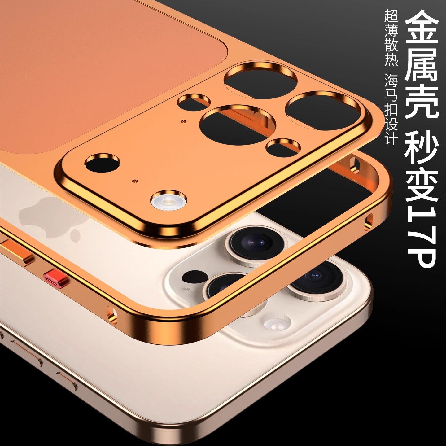 适用苹果16promax手机壳秒变17promax金属壳新款iphone15超薄防摔散热14pro海马扣设计13pro高级感男生保护套 - 晨晨数码配件