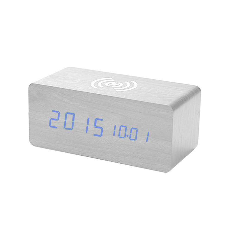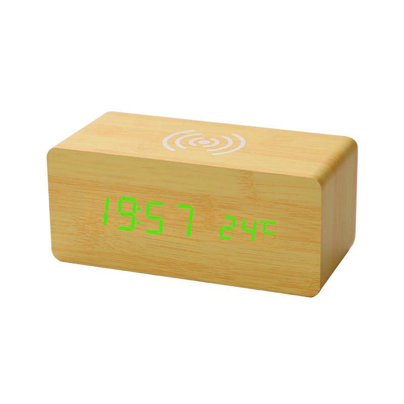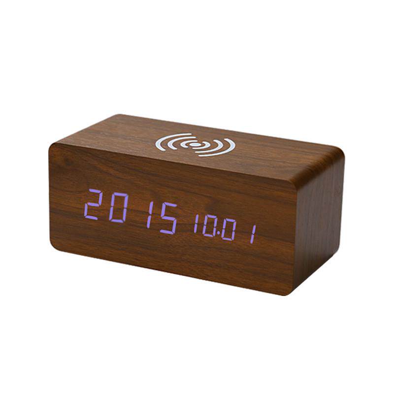 家居木头钟无线充led声控静音电子闹钟智能木头钟无线充数显座钟 - tb909570969188
