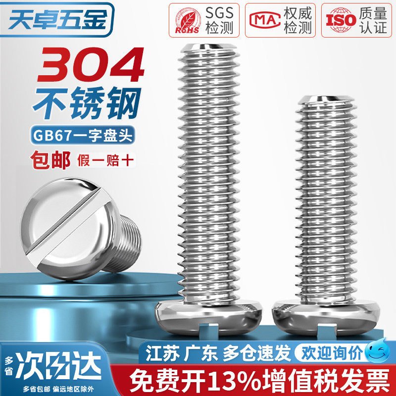 GB67盘头一字螺丝钉304不锈钢圆头开槽螺栓MM1.6M2M2.5M3M4M5M6M8 - 天卓五金官方旗舰店
