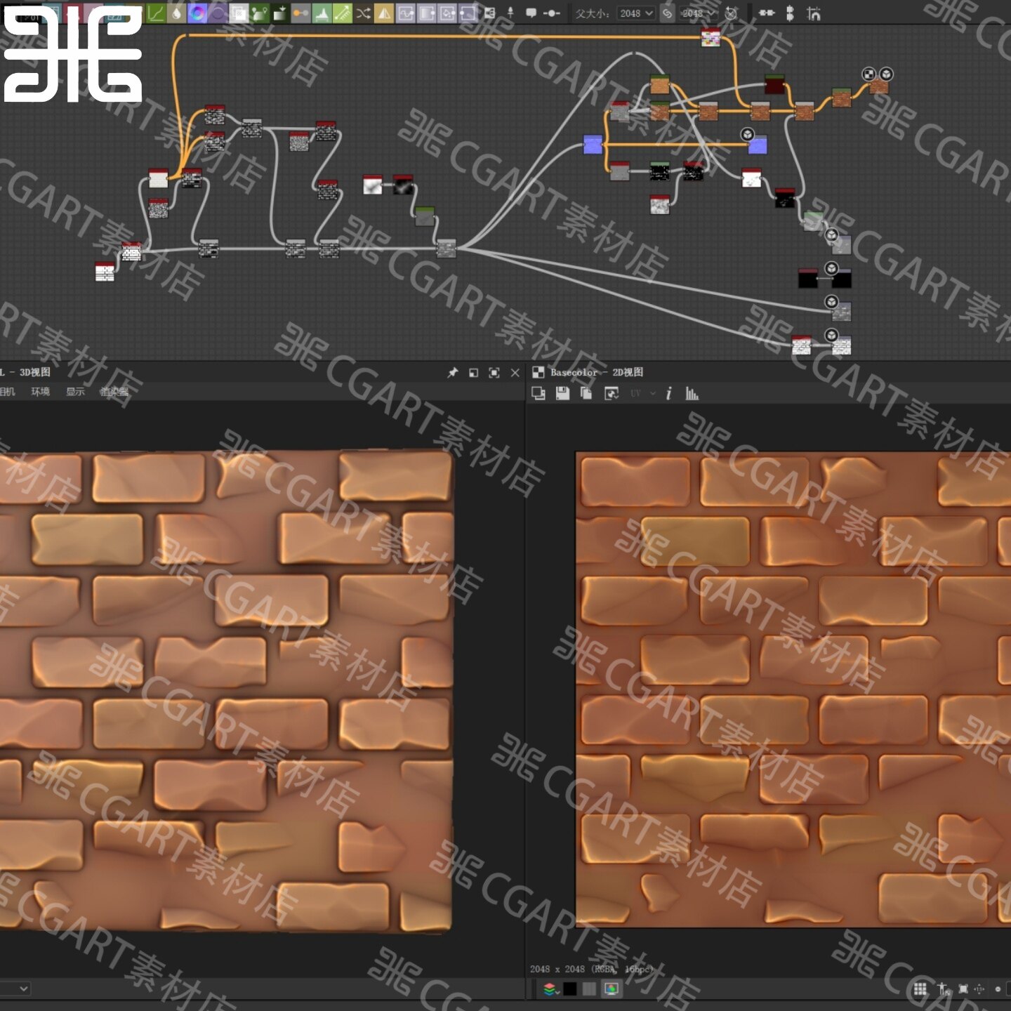 Substance Designer风格化破损砖石装饰地面砖块SD材质sbs源文件 - CGART素材店