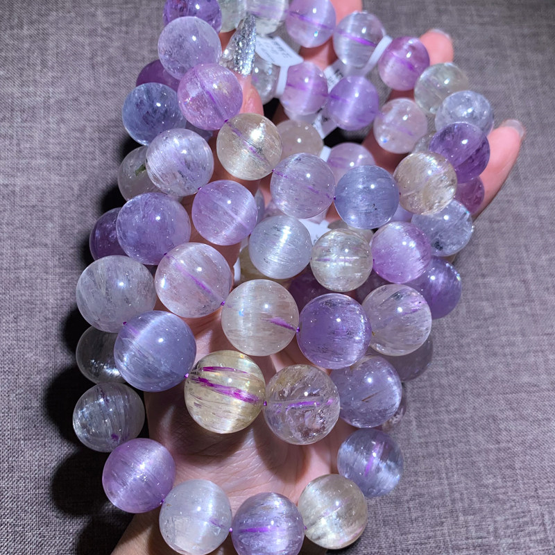 天然老矿拉丝猫眼紫锂辉石手链单圈梦幻薰衣草时尚配饰礼物情侣款 - 东海水晶卖吧