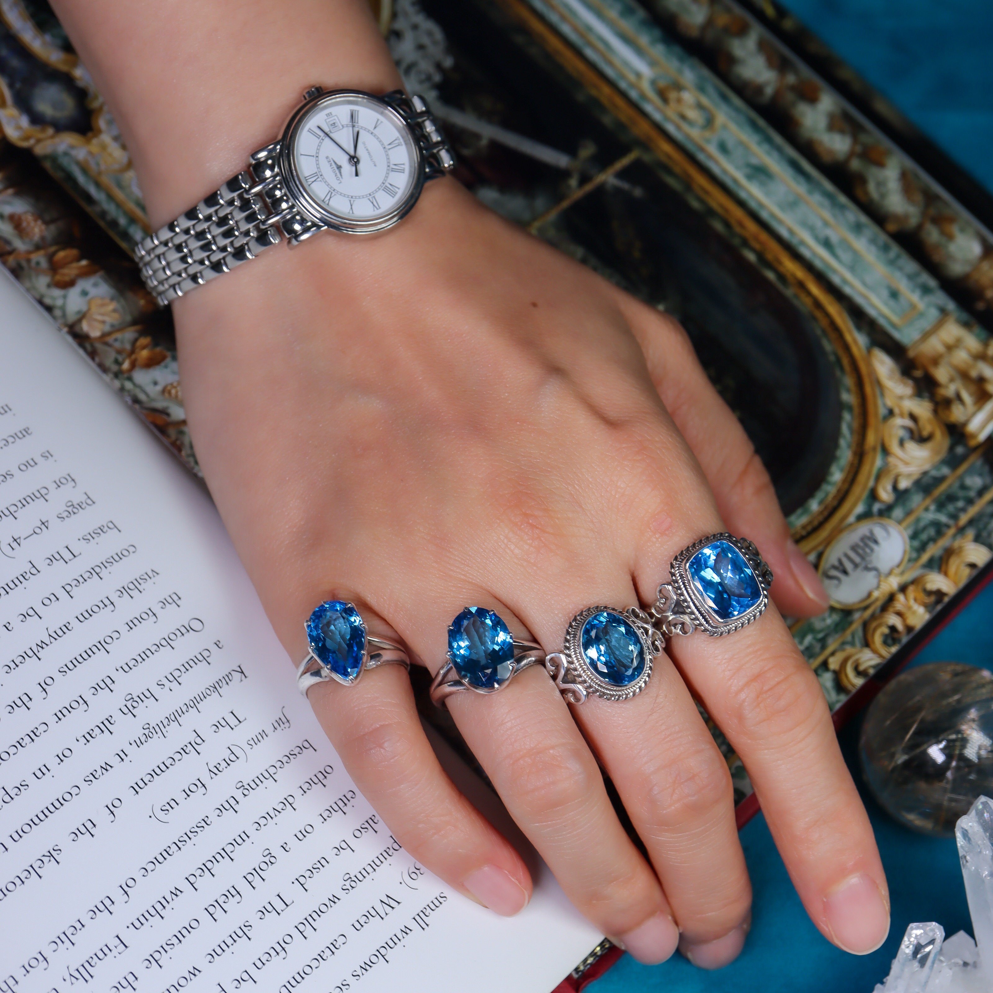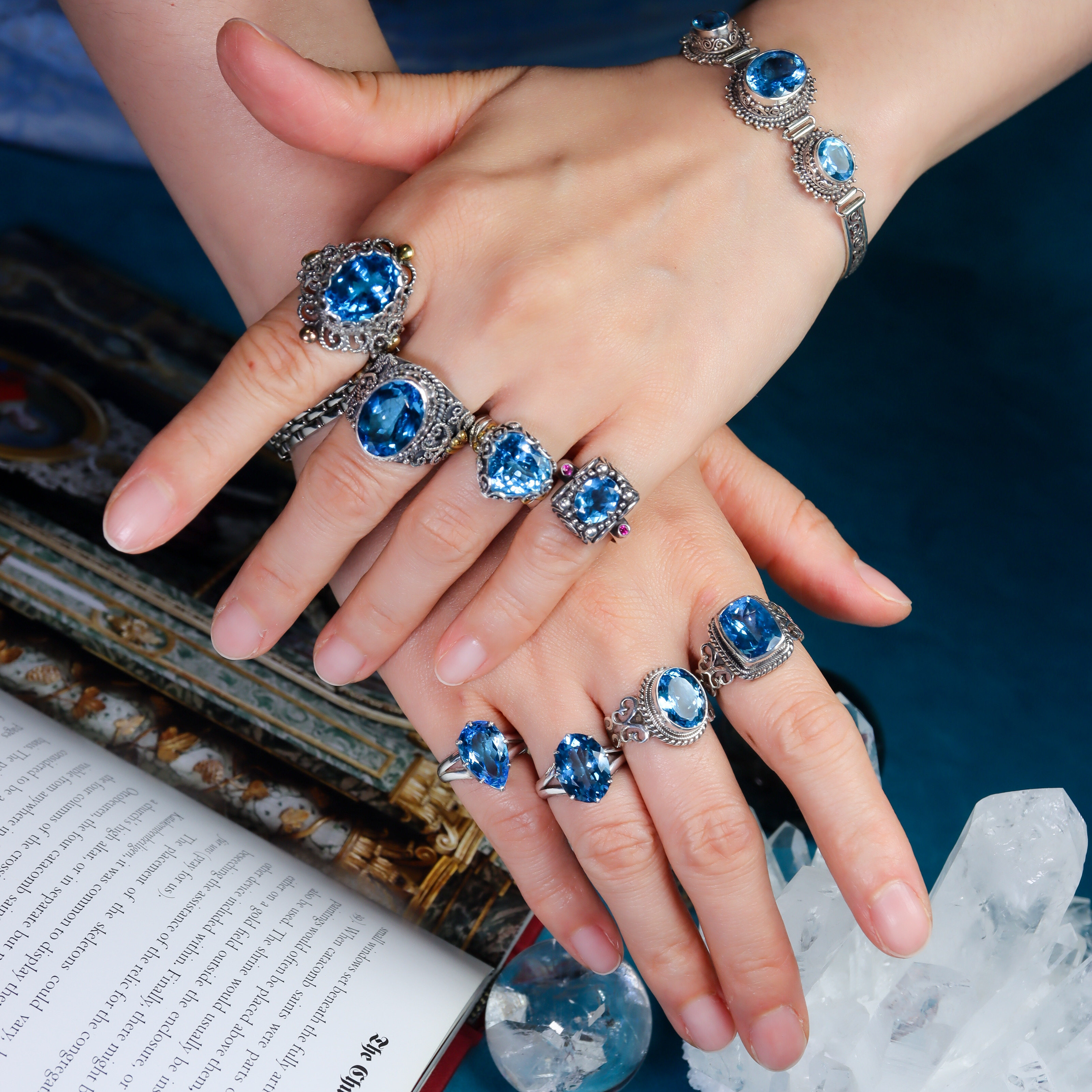尼泊尔手工蓝托帕石戒指S925纯银镶嵌复古宫廷风高级宝石女戒 - 愉悦之光手工珠宝全球海淘delight light