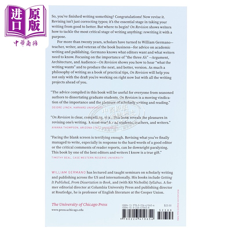 芝加哥写作编辑和出版指南系列 论修改重要的写作 On Revision The Only Writing That Counts Chicago Guides【中商原版】 - 中华商务图书专营店