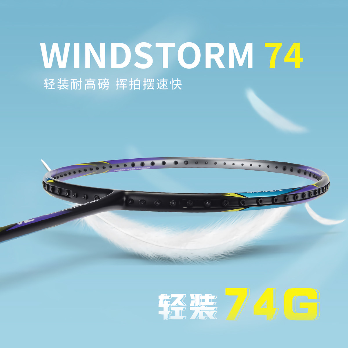 Lining/李宁正品Windstorm 74碳纤维高磅炫彩羽毛球拍单拍AYPQ008 - 五湖体育