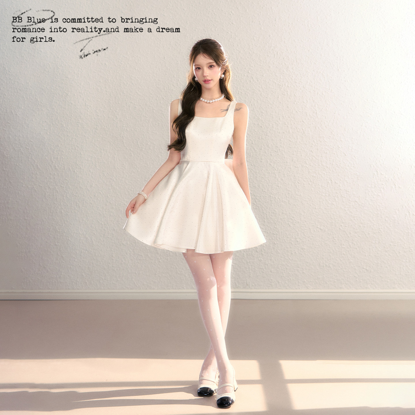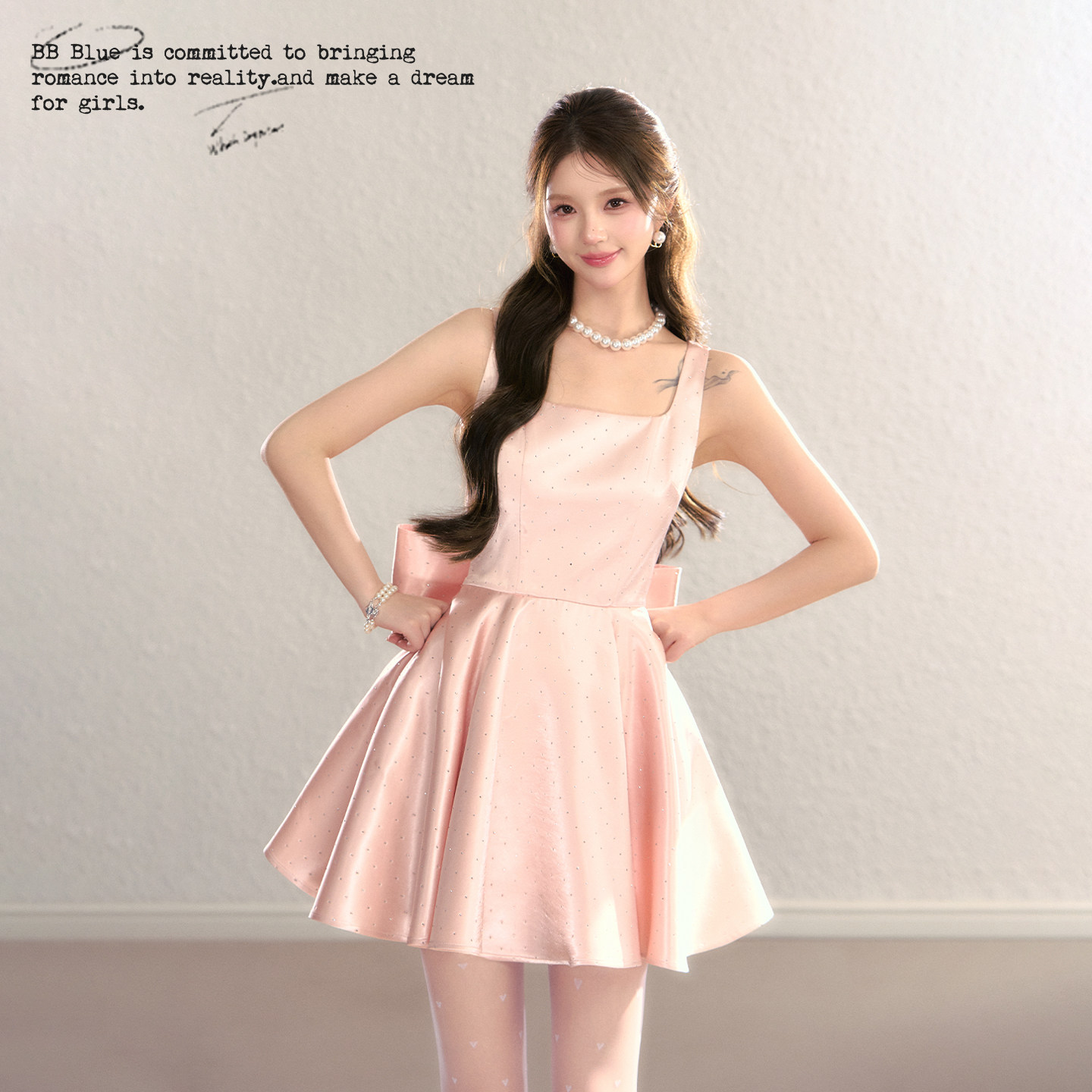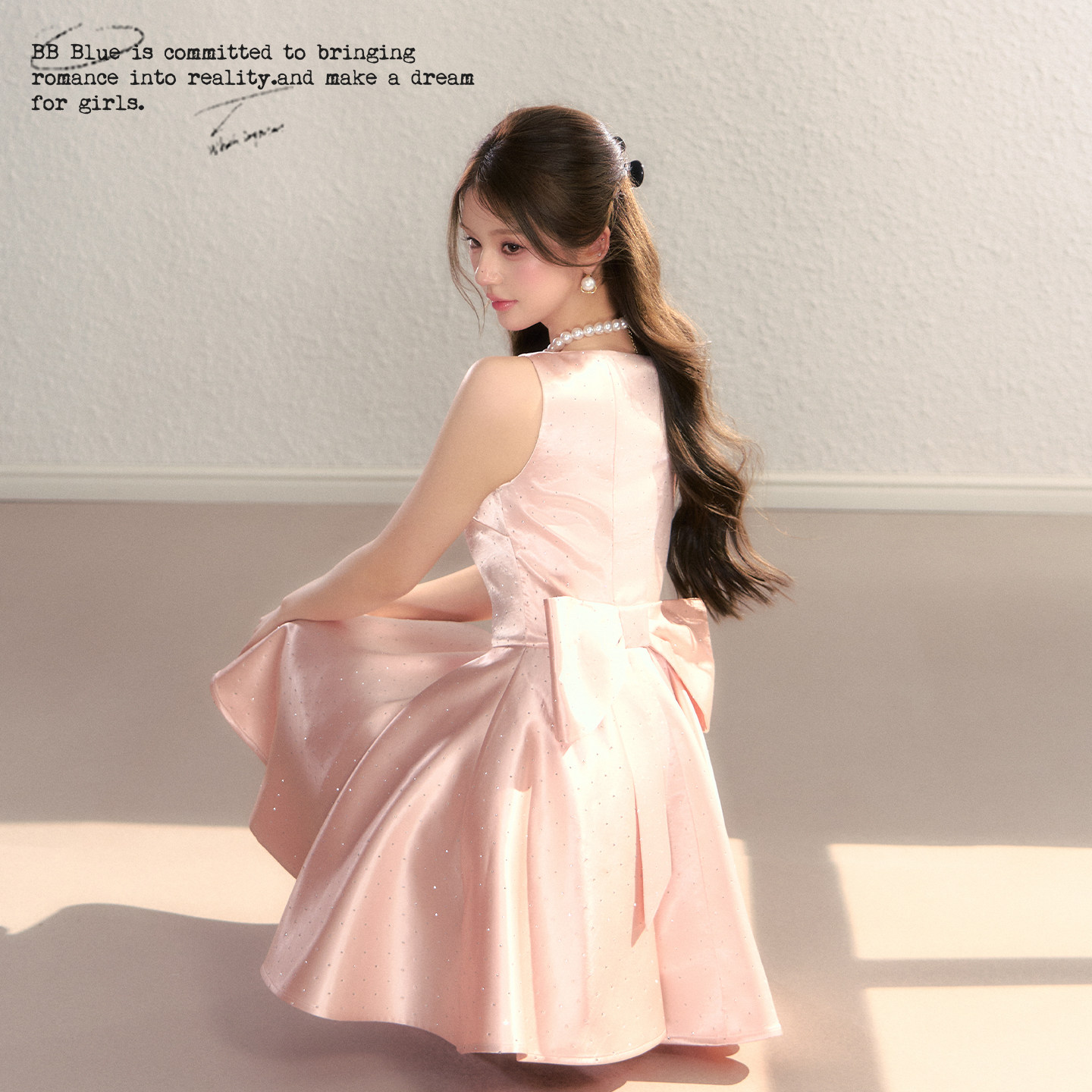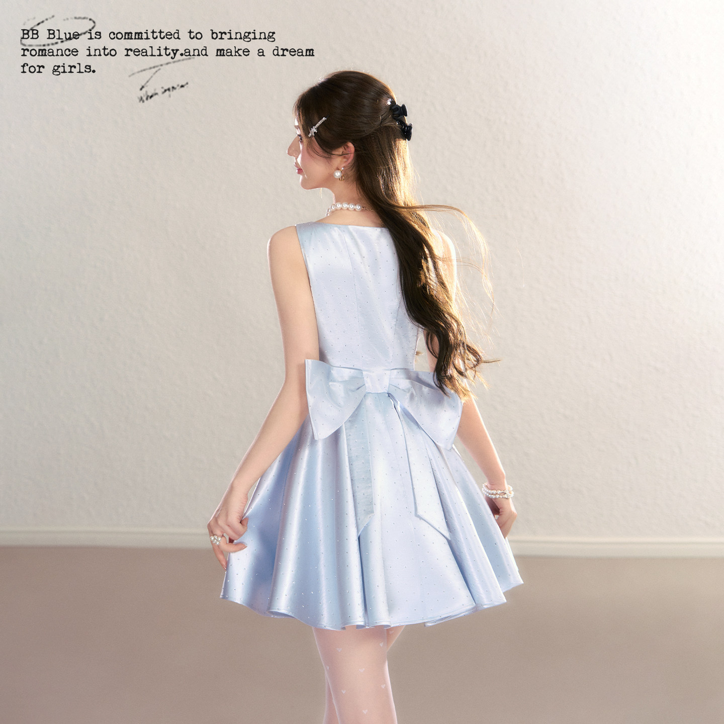 BBBLUE/闪闪公主/高级感生日战袍千金风A字蝴蝶结细闪吊带连衣裙 - BB BLUE STUDIO