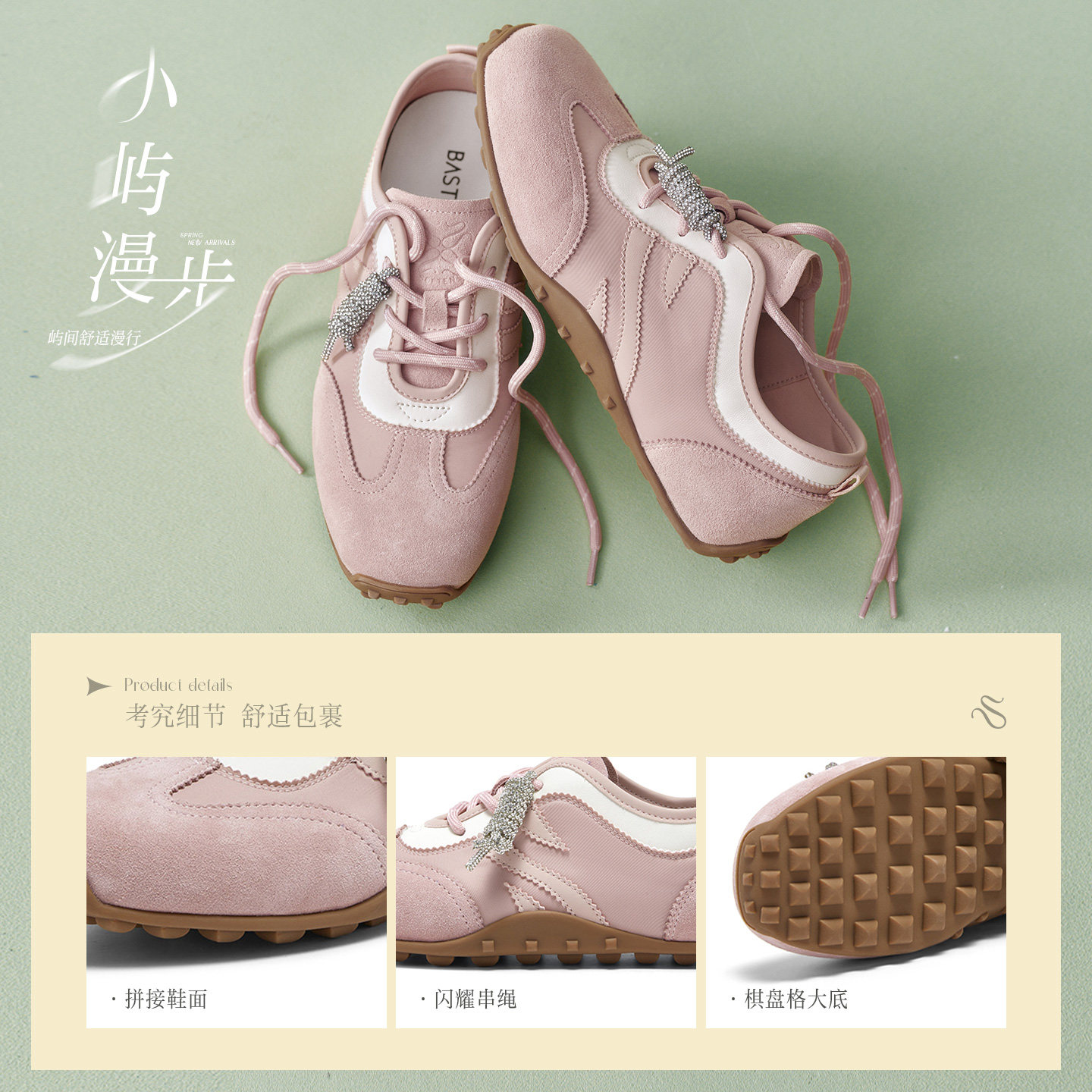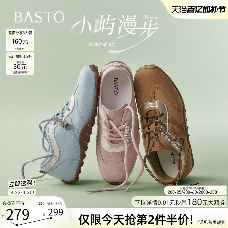 百思图2026春季新款真皮德训鞋棕色运动鞋女休闲鞋阿甘鞋D3590AM6 - 百思图官方旗舰店