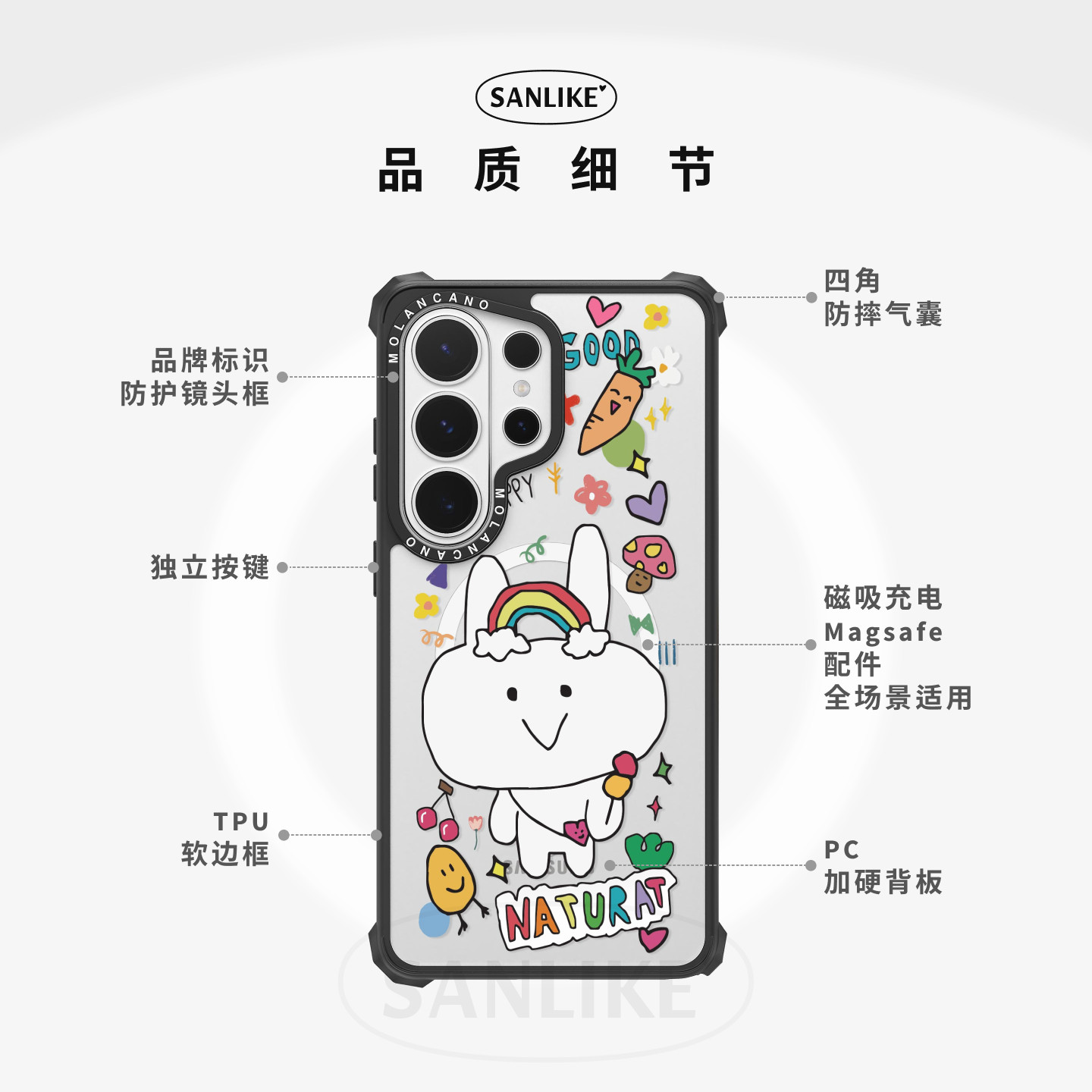 韩国MOLANCANO三星Galaxy S26 Ultra手机壳新款可爱兔子猫咪透明轻薄防摔磁吸保护壳s26卡通保护套专用外壳 - Sanlike Shop