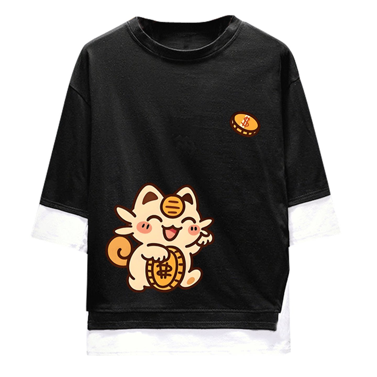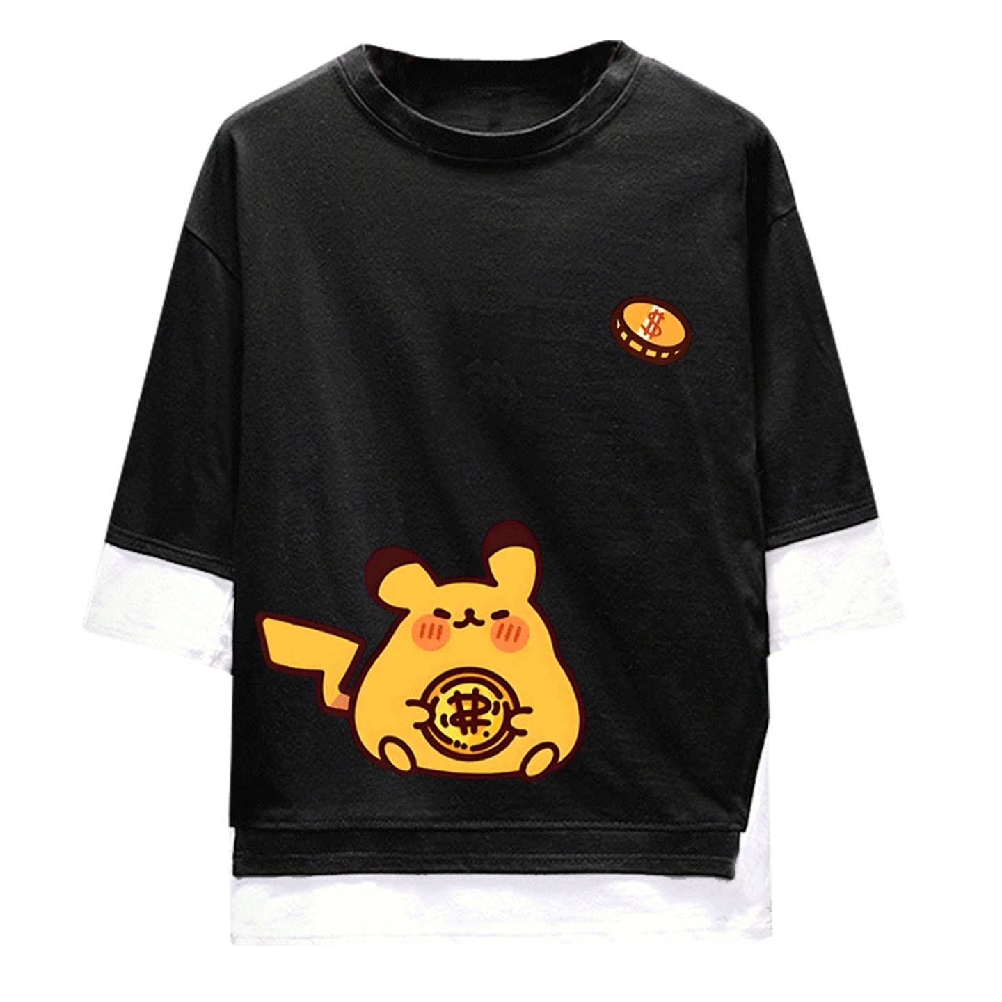 精灵宝可梦可定制短袖假两件动漫发财小精灵皮卡丘耿鬼谜拟丘卡通 - skbanru旗舰店