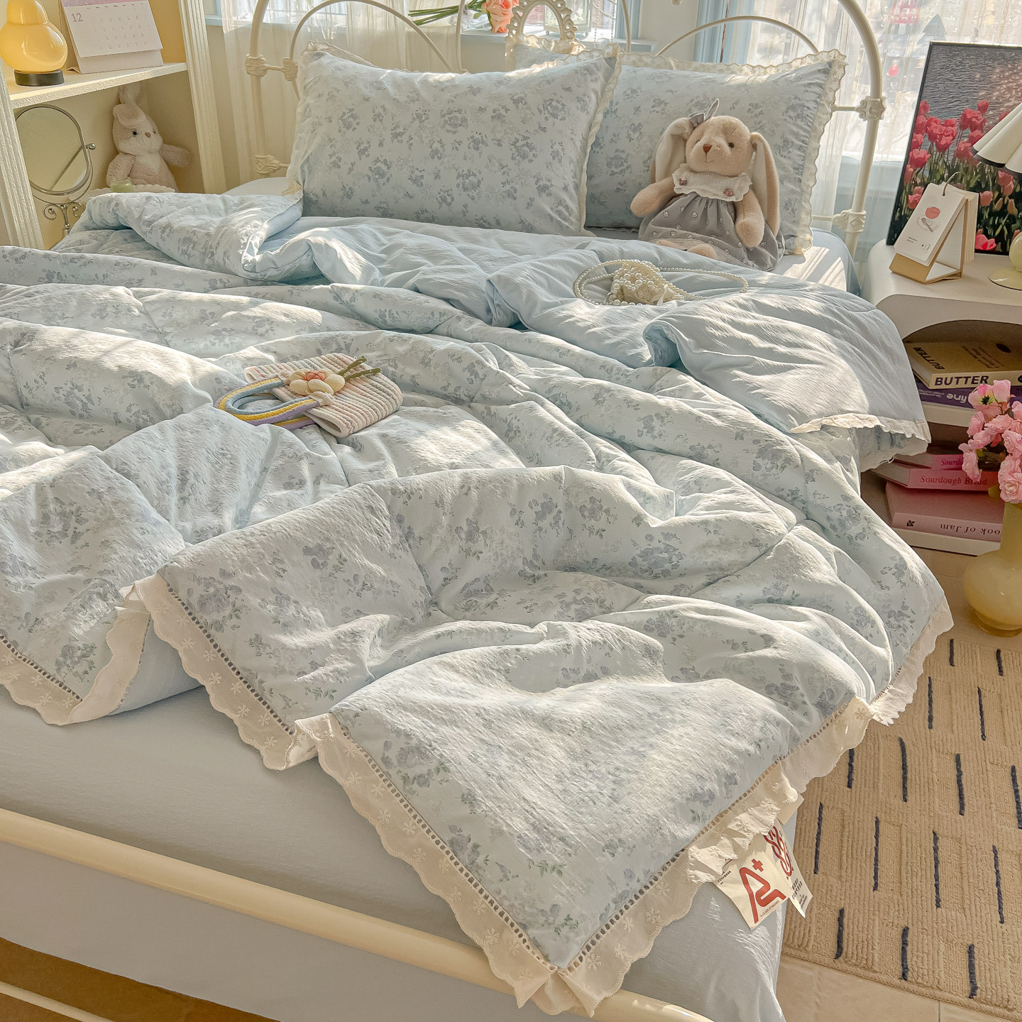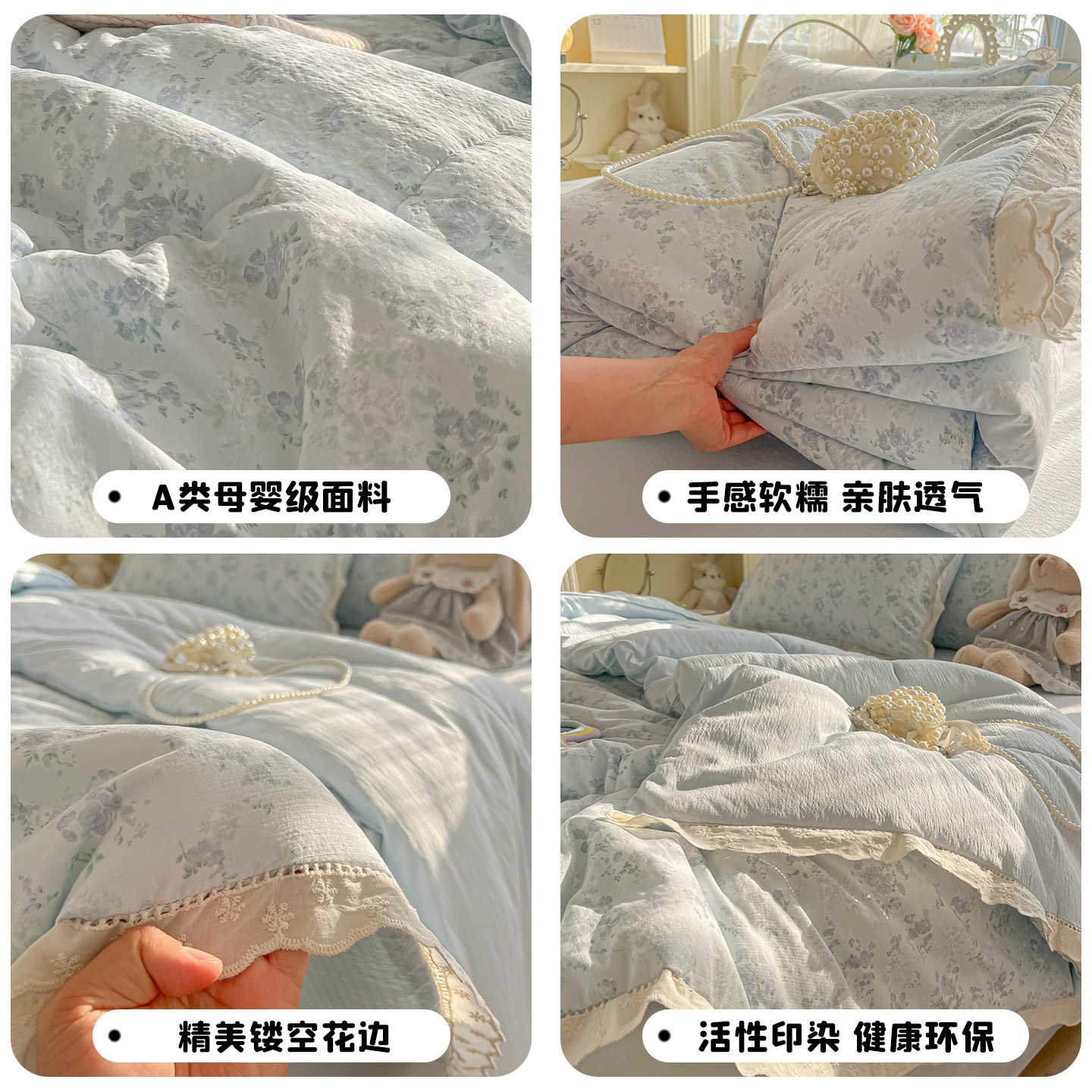 双层纱纯棉全棉夏凉被四件套花边夏被三件套空调被可机洗薄被子芯 - 墨生活Soft Life