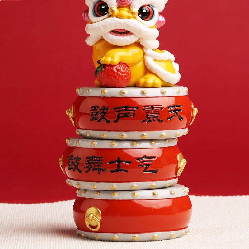 创意车载醒狮摆件中控台车饰用品可爱舞狮办公桌桌面工位鼓舞士气 - 礼韵童心