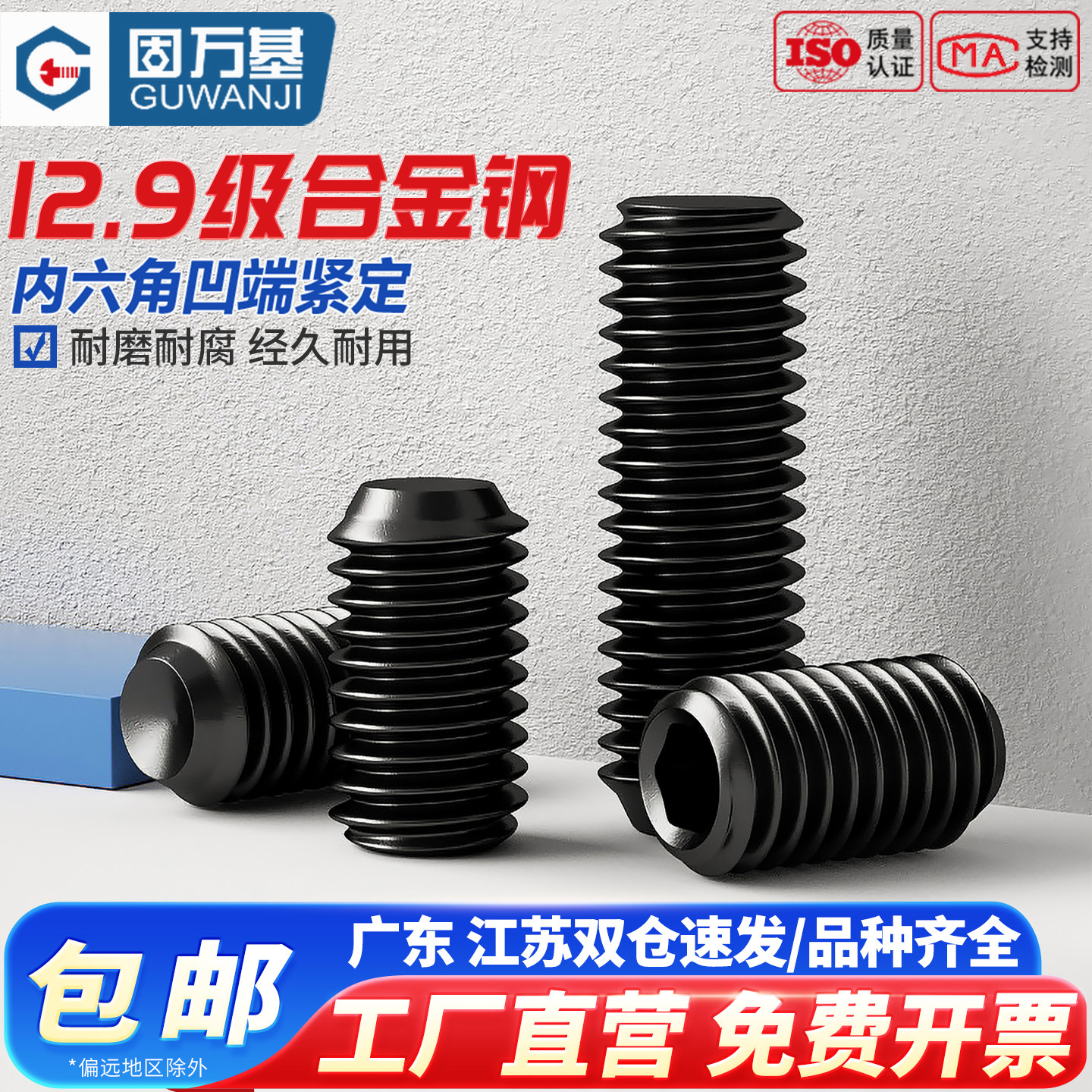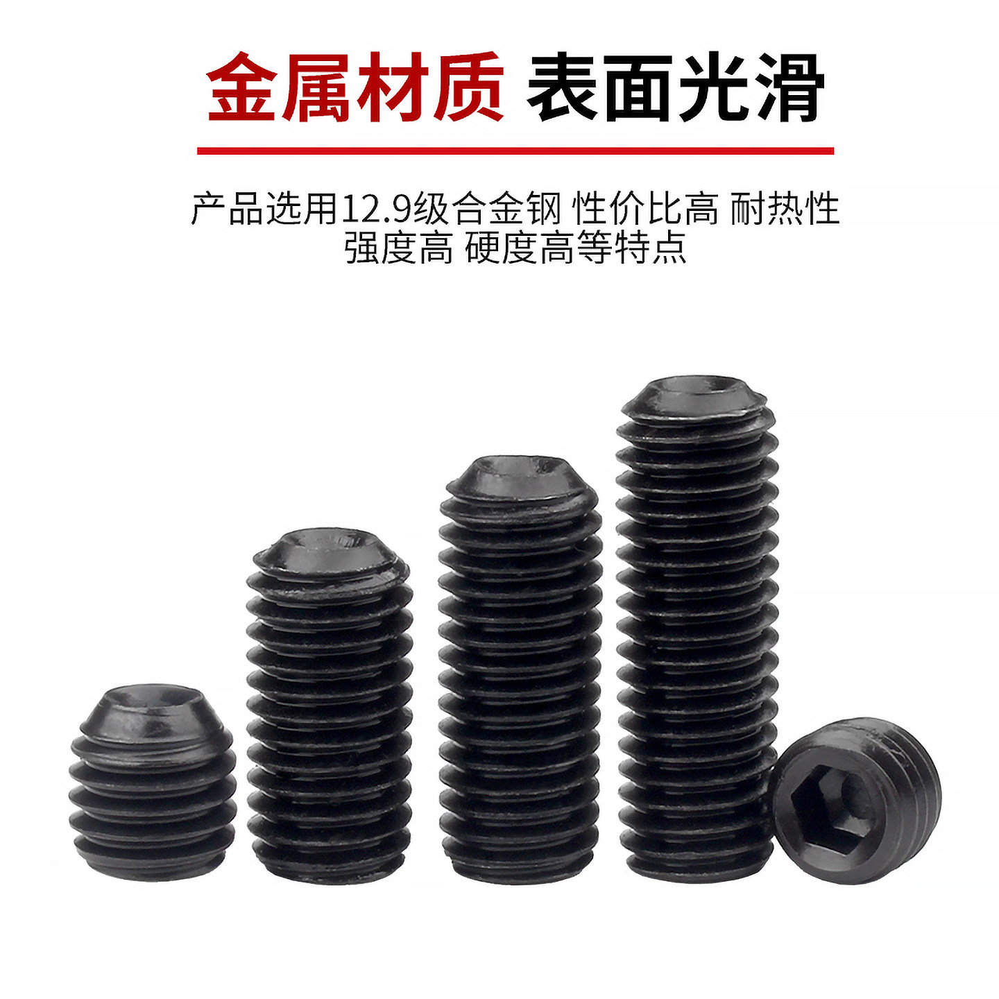 紧定螺丝12.9级黑色内六角无头螺丝凹端机米螺钉基米顶丝M2M3M4M5 - 固万基官方旗舰店