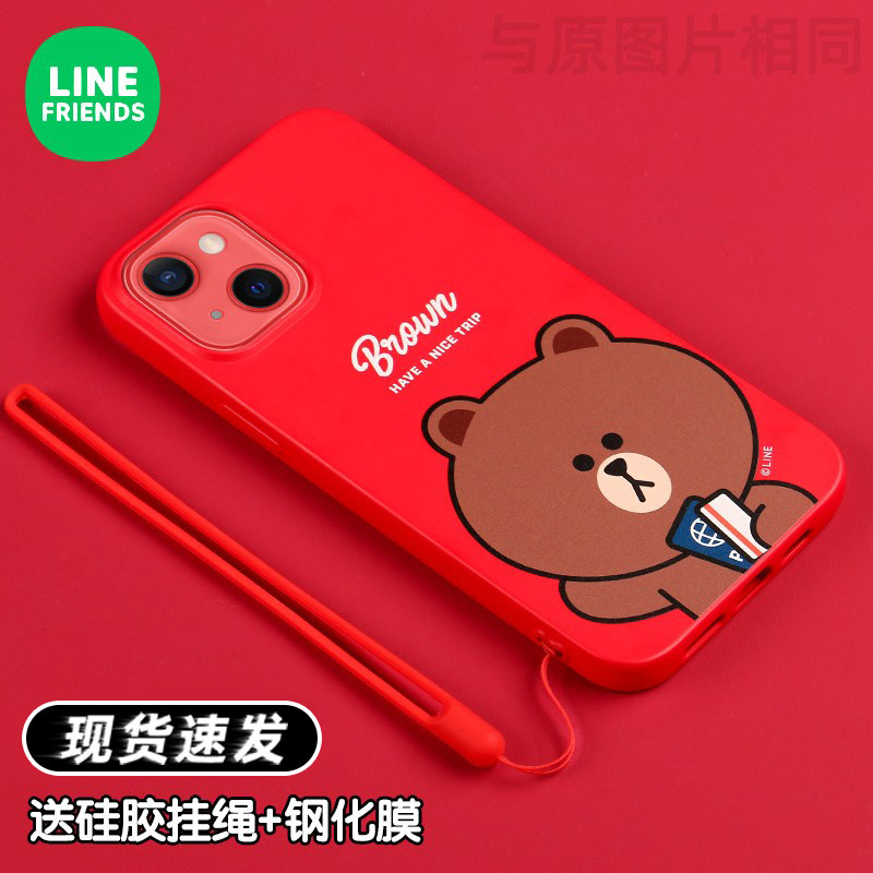 linefriends布朗熊新款iPhone13promax手机壳苹果12mini可爱卡通硅胶新年兔年红色春节过年11喜庆可妮兔子女 - 小娃娃潮品