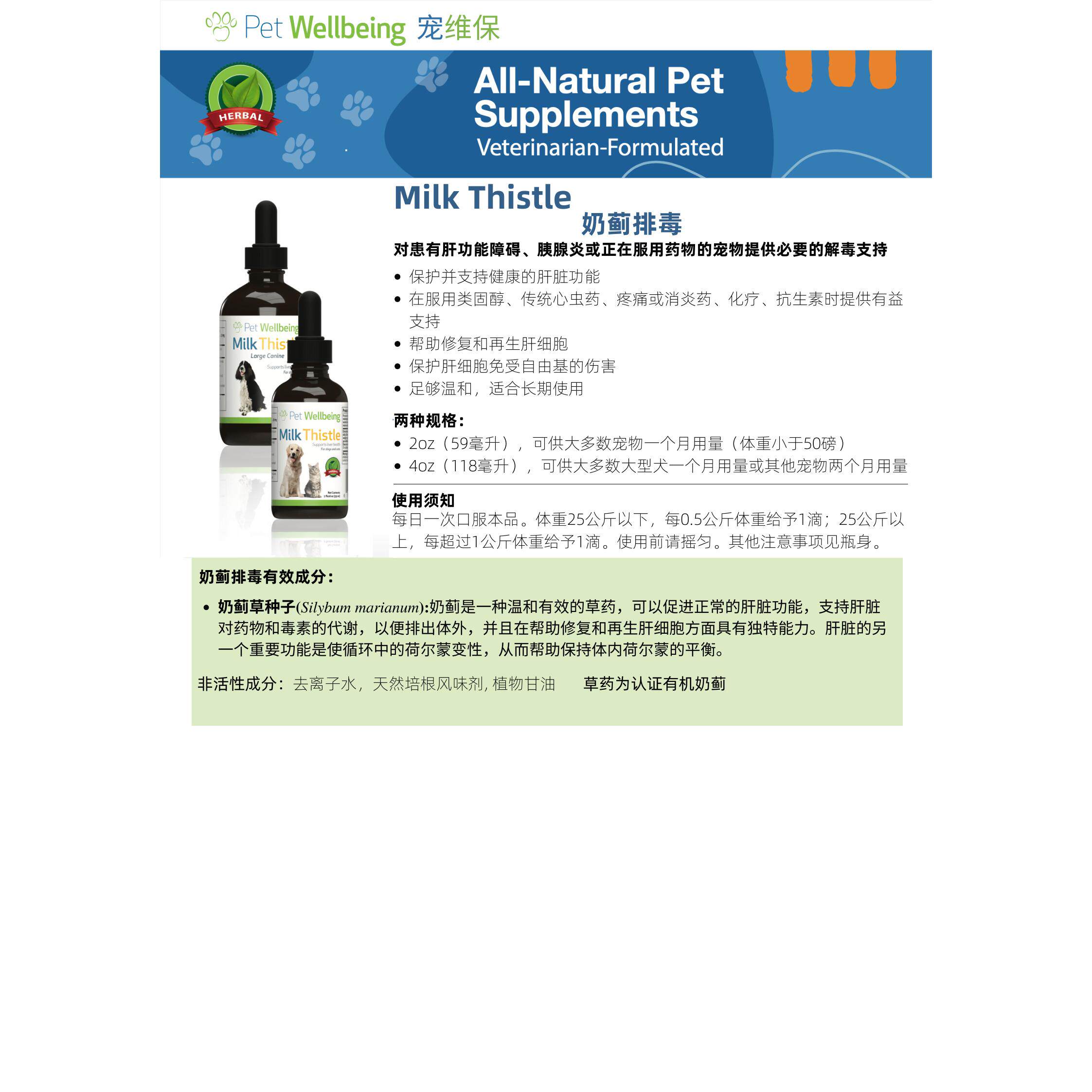 宠维保pet wellbeing猫狗奶蓟草护肝养肝排毒草本保健宝 - DC宠物商店
