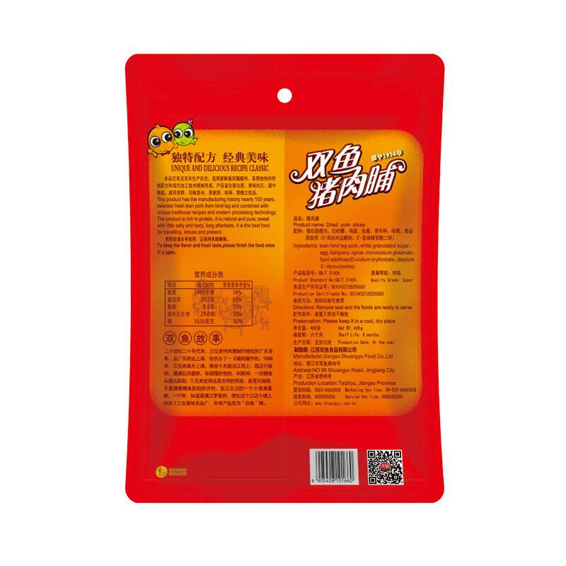 双鱼猪肉脯独立小包零食靖江特产猪肉铺金奖猪肉干片原味付片200g - 靖江特产喜友猪肉脯