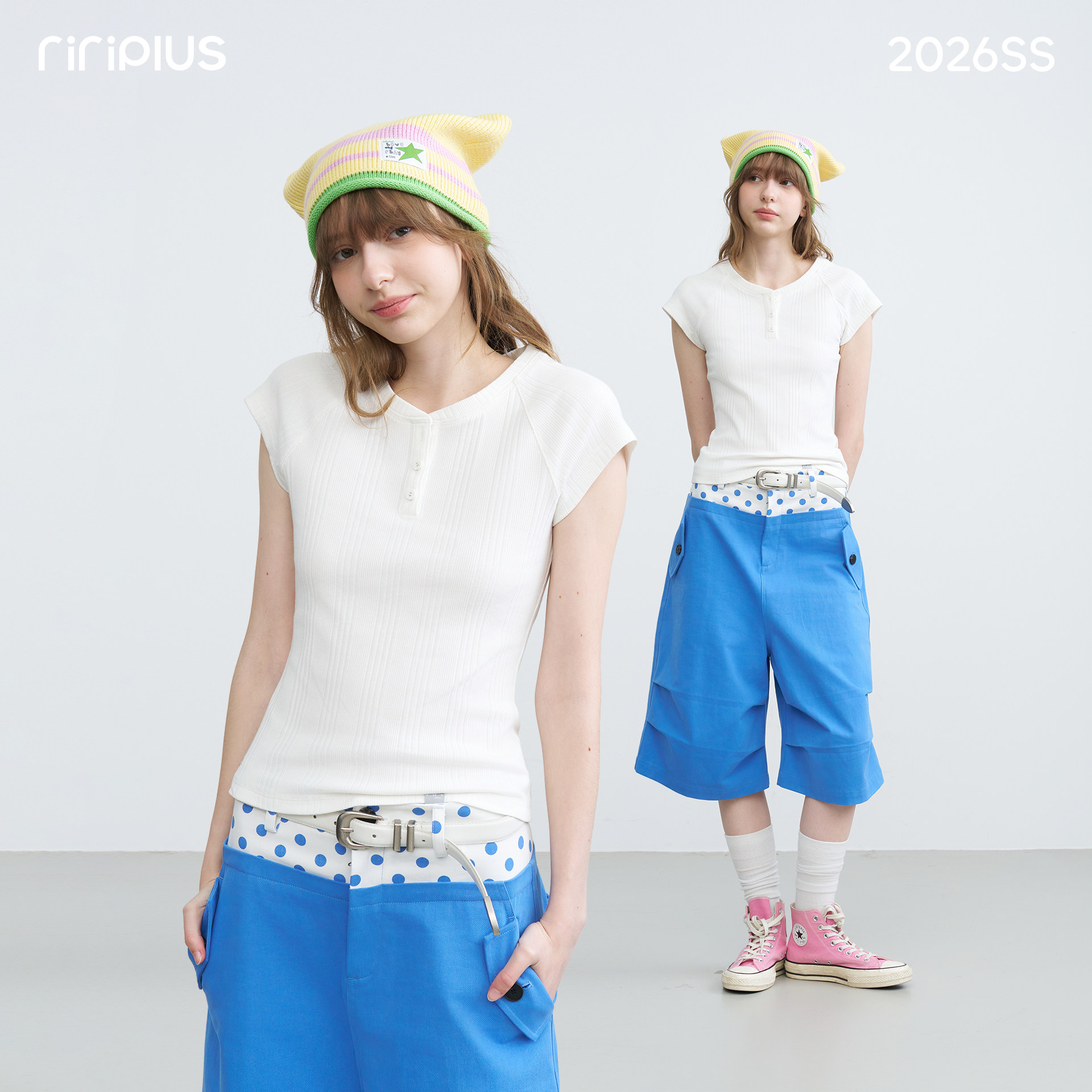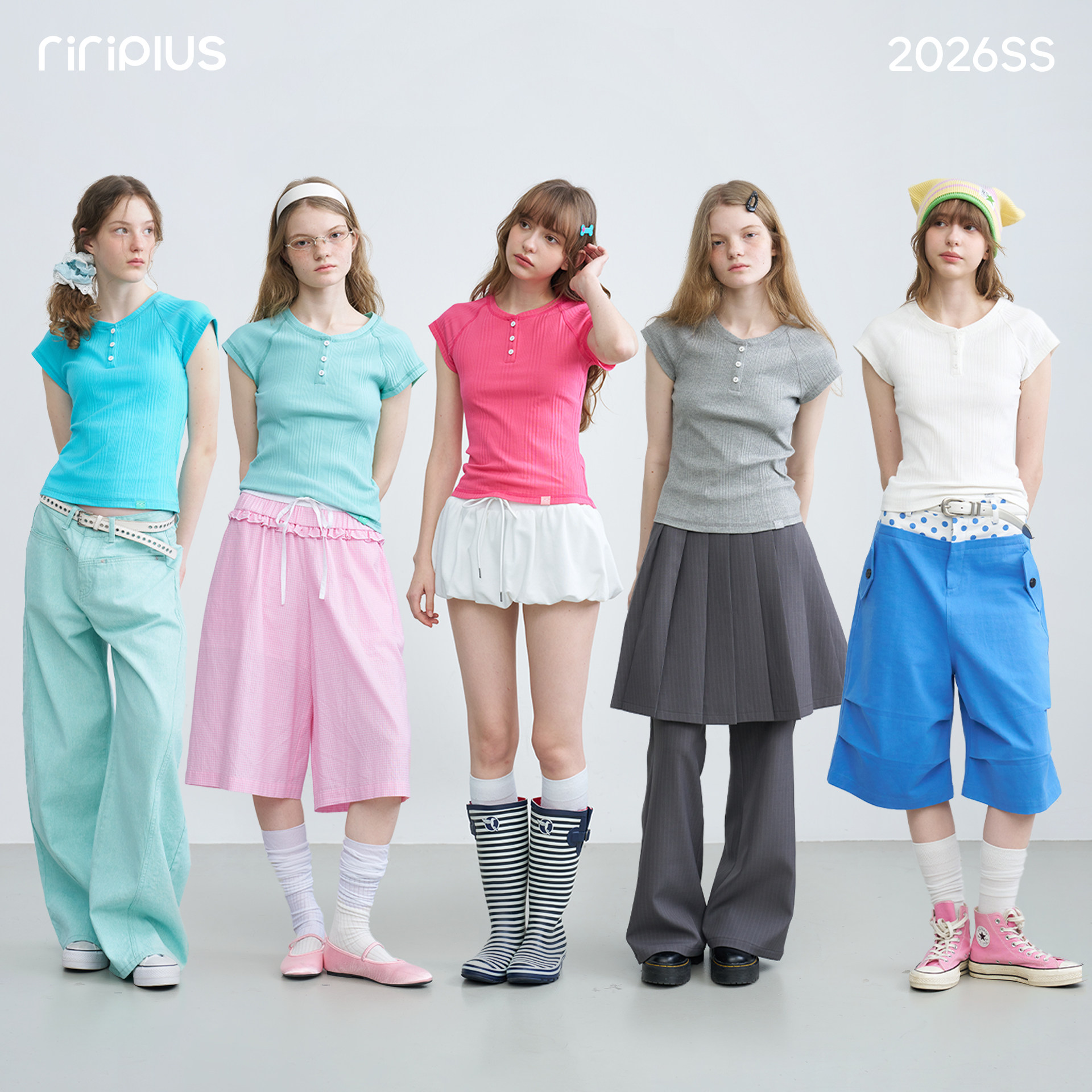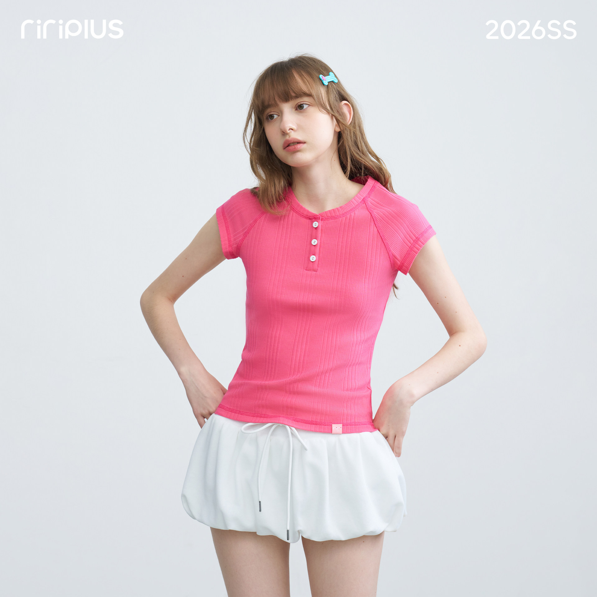 riverstone plus亨利领正肩插肩袖短袖T恤女简约竖条纹修身打底衫 - riverstone plus