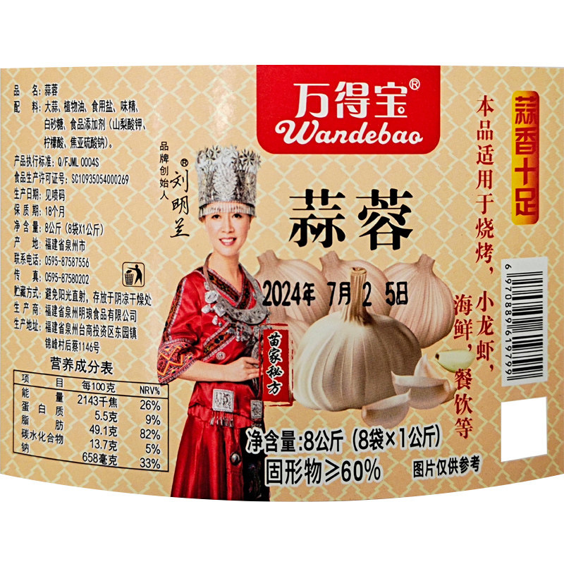万得宝蒜蓉酱1kg*8袋餐饮烤生蚝火锅原味调料小龙虾海鲜多用酱料 - 康诚泰业食品专营店