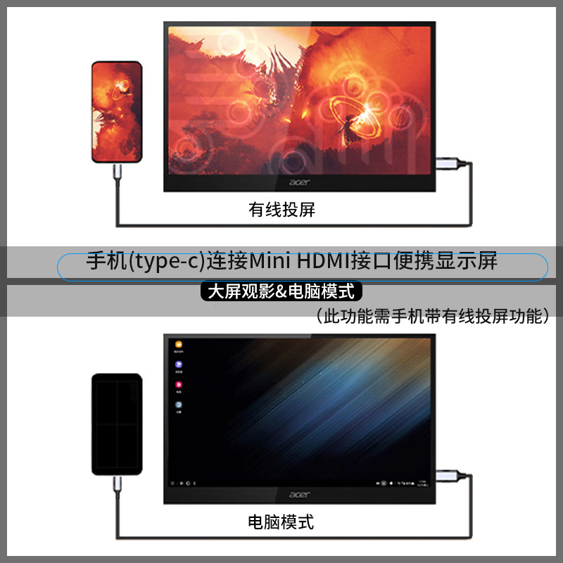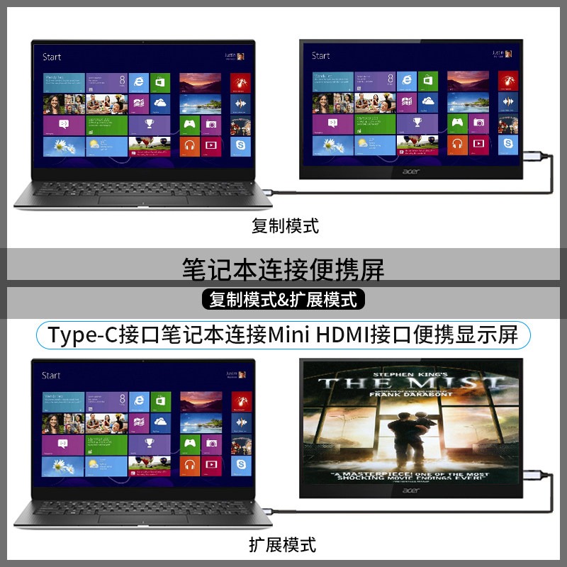 Type-C转Mini HDMI线4k60hz适用苹果MacBook雷电3连接便携显示屏 - 森声影音专营店