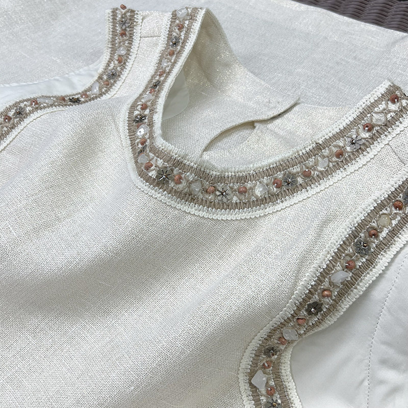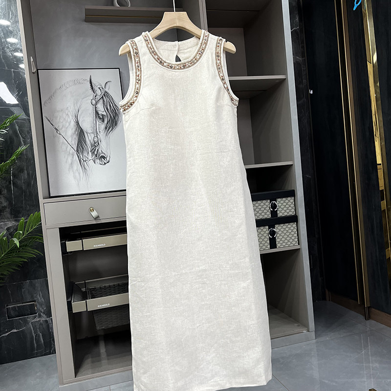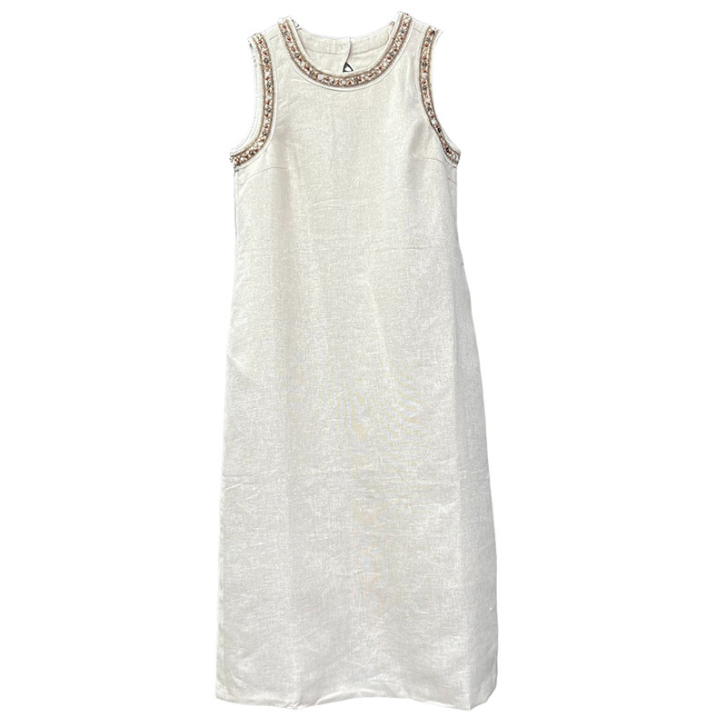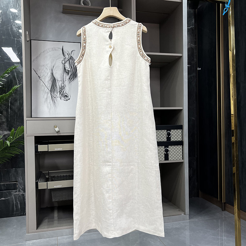 柜款!高颜值气质单品!手工钉珠金丝亚麻背心连衣裙 AC01225~ZY - 锐雪加
