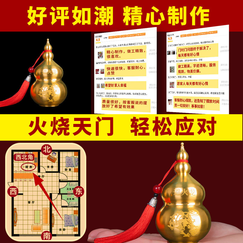 避火龙瓶子厨房西北角大号铜葫芦摆件乾位火烧天门辟火Z龙瓶工艺 - 玉发轩德商城的小店2