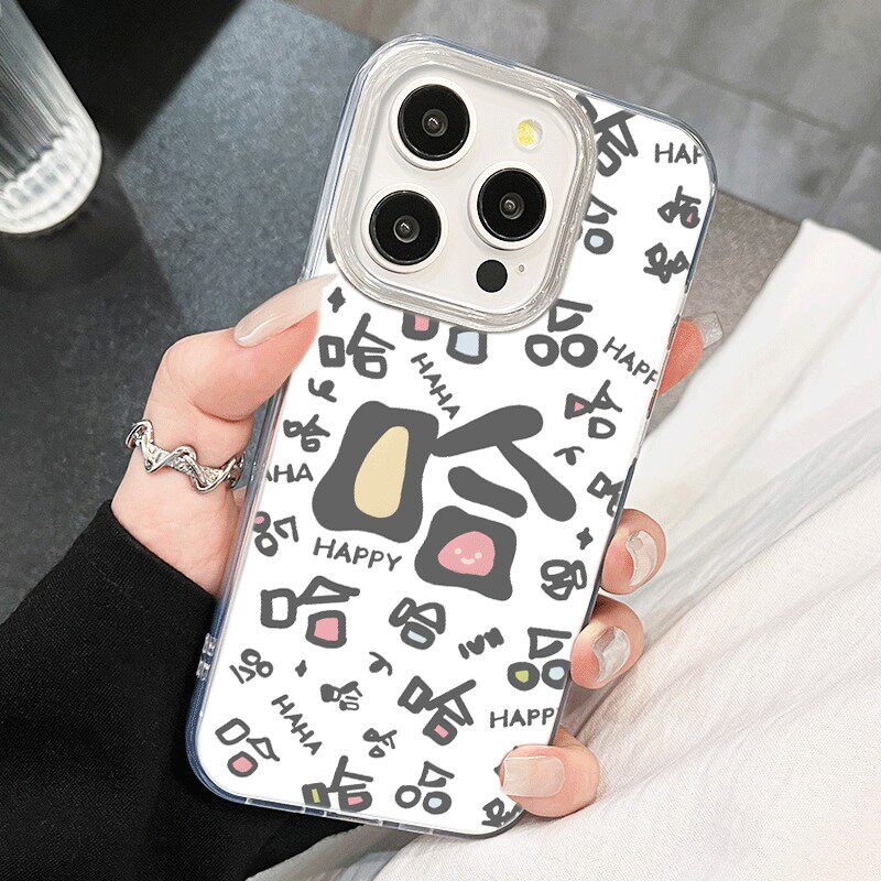 手机壳带挂绳16ProMax苹果1213适用iPhone17硬14羽纱15PLUS满屏镂空哈哈哈哈荣耀500OPPOA5X小米CIVI5PROVIVO - 乐淘里CASE