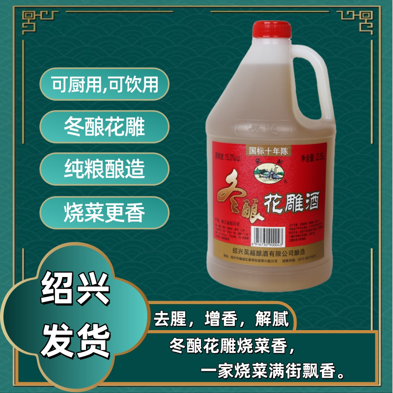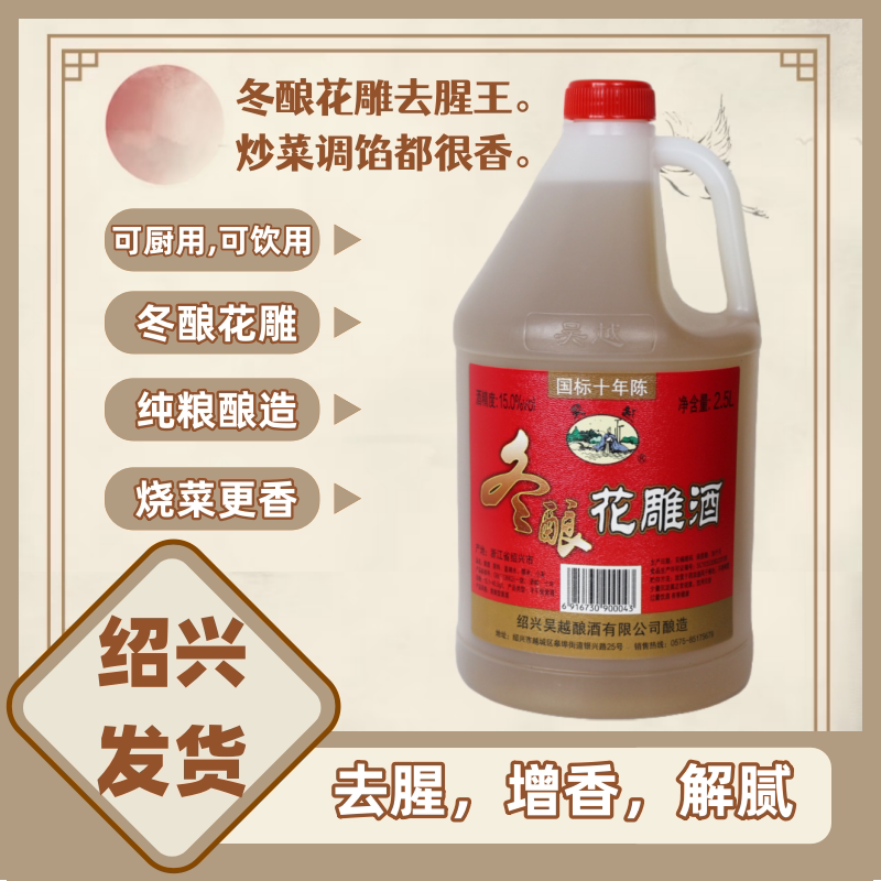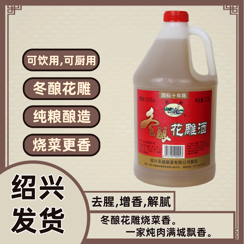 吴越冬酿花雕酒绍兴国标十年陈糯米半干型加饭2.5L桶装黄酒 - 吴越黄酒旗舰店