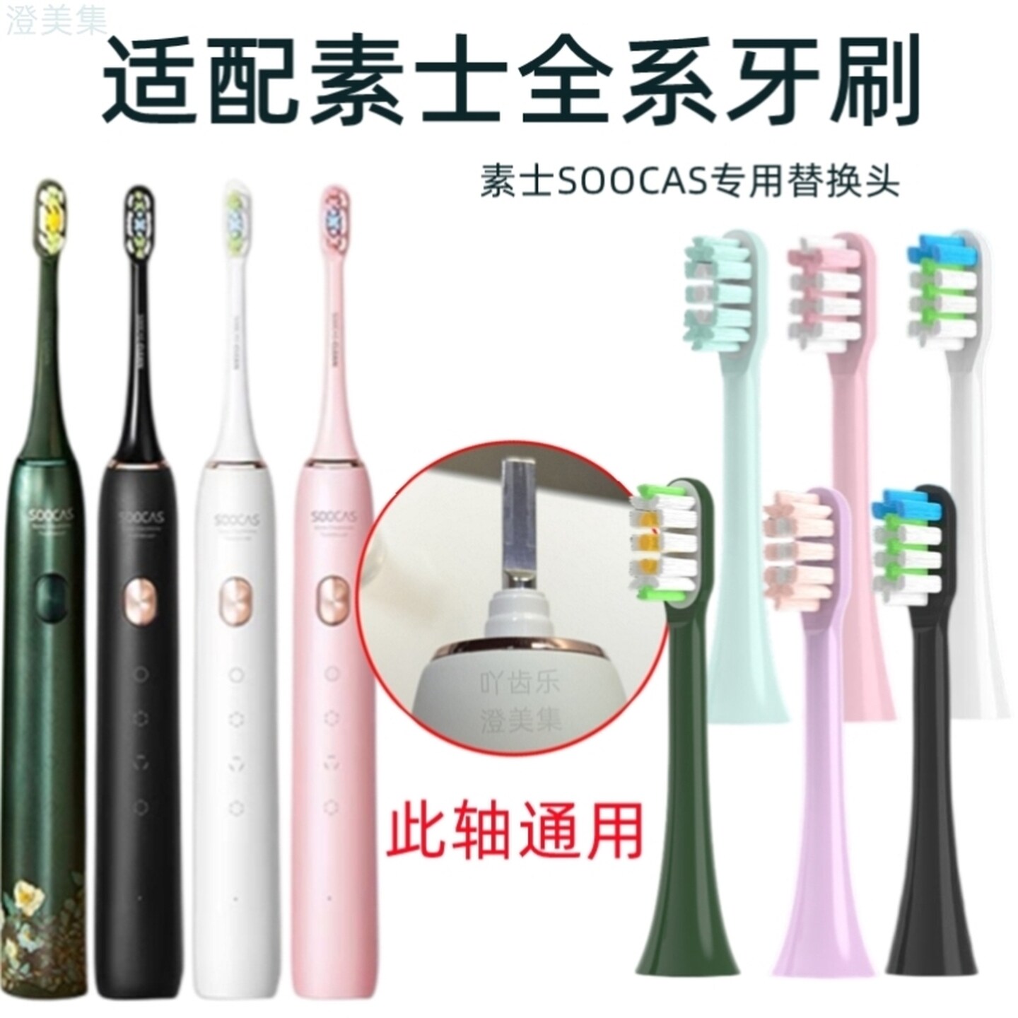 适配SOOCAS素士电动牙刷 V1 V2 V3 X3U X5专用替换刷头 (8支装) - 国水时尚企业店
