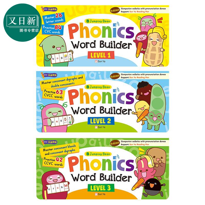 新雅点读 小跳豆自然拼读入门教材(翻翻卡) 3册 Jumping Bean Phonics Word Builder L1-L3 原版 儿童参考资料 又日新 - 又日新图书专营店