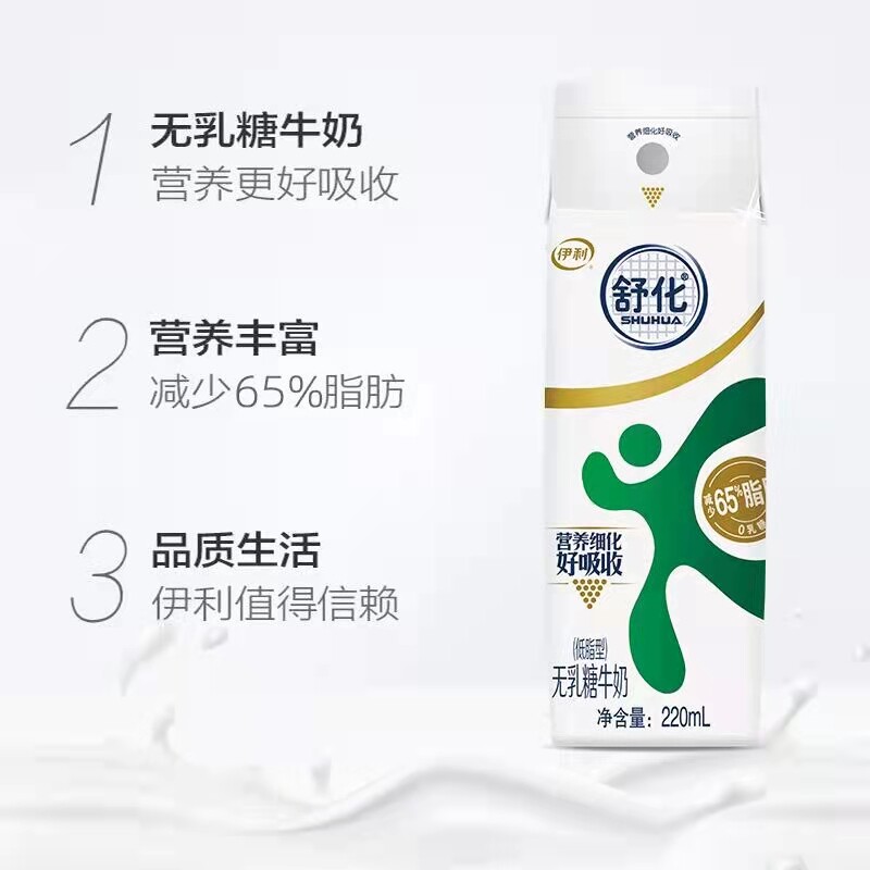 伊利舒化无乳糖牛奶全脂低脂高钙整箱营养早餐220ml*24盒 - 优乐食品馆