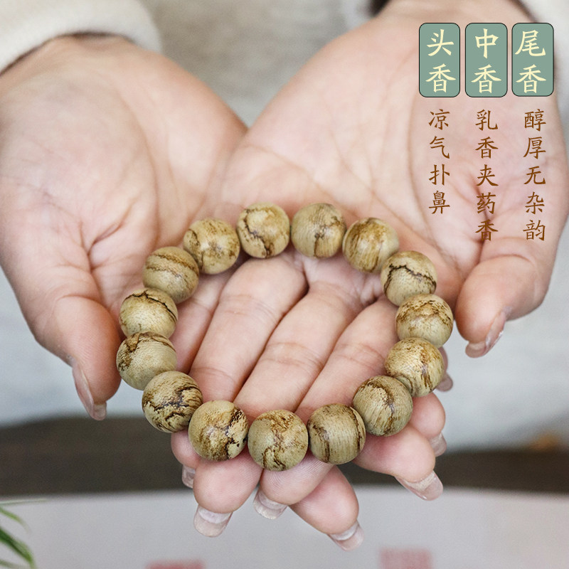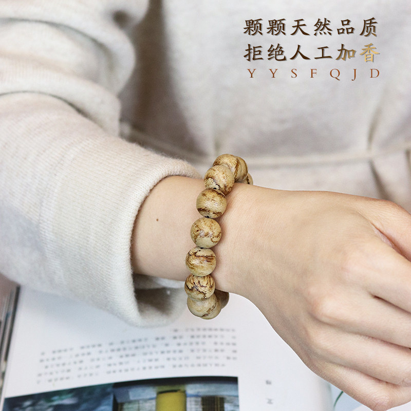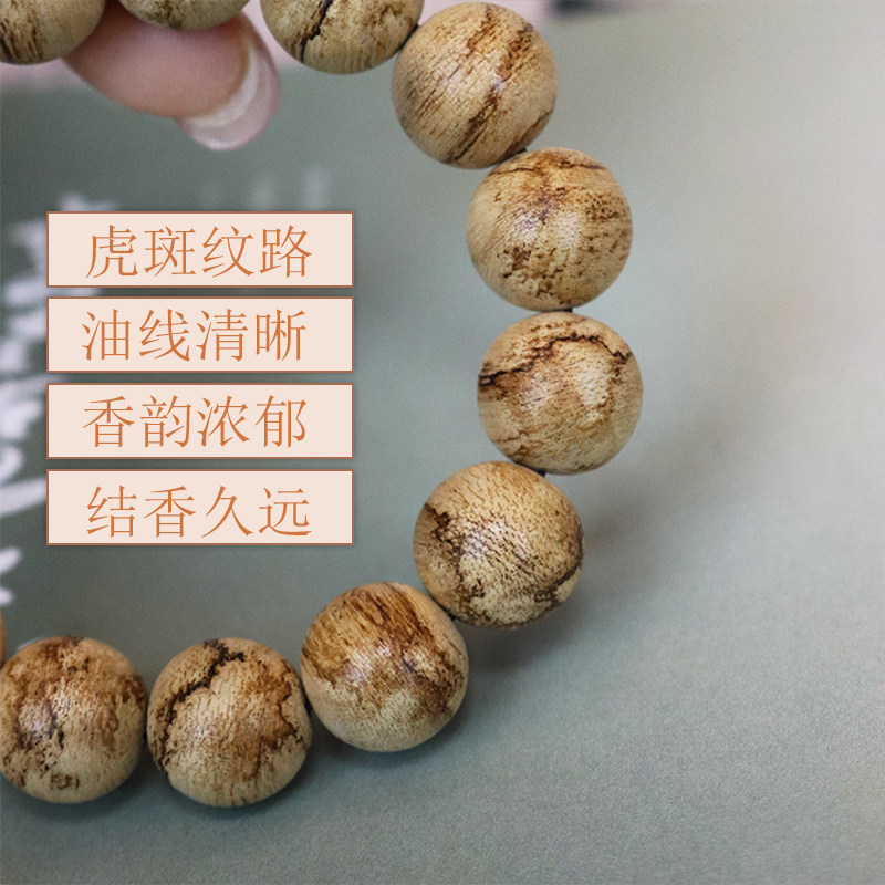 天然野生沉香印尼达拉干虎斑纹高级文玩佛珠手串14mm入门级男女款 - 源缘双福旗舰店