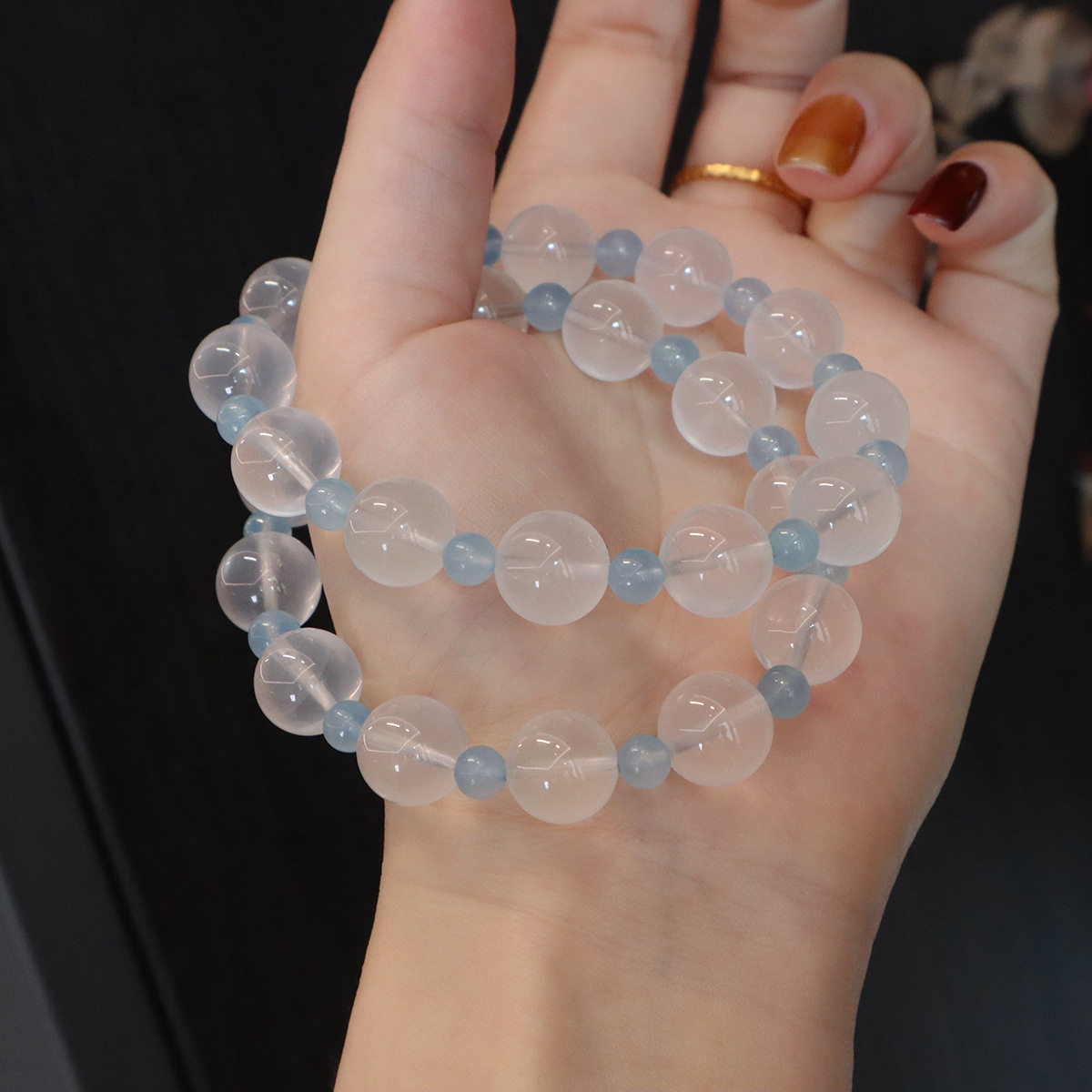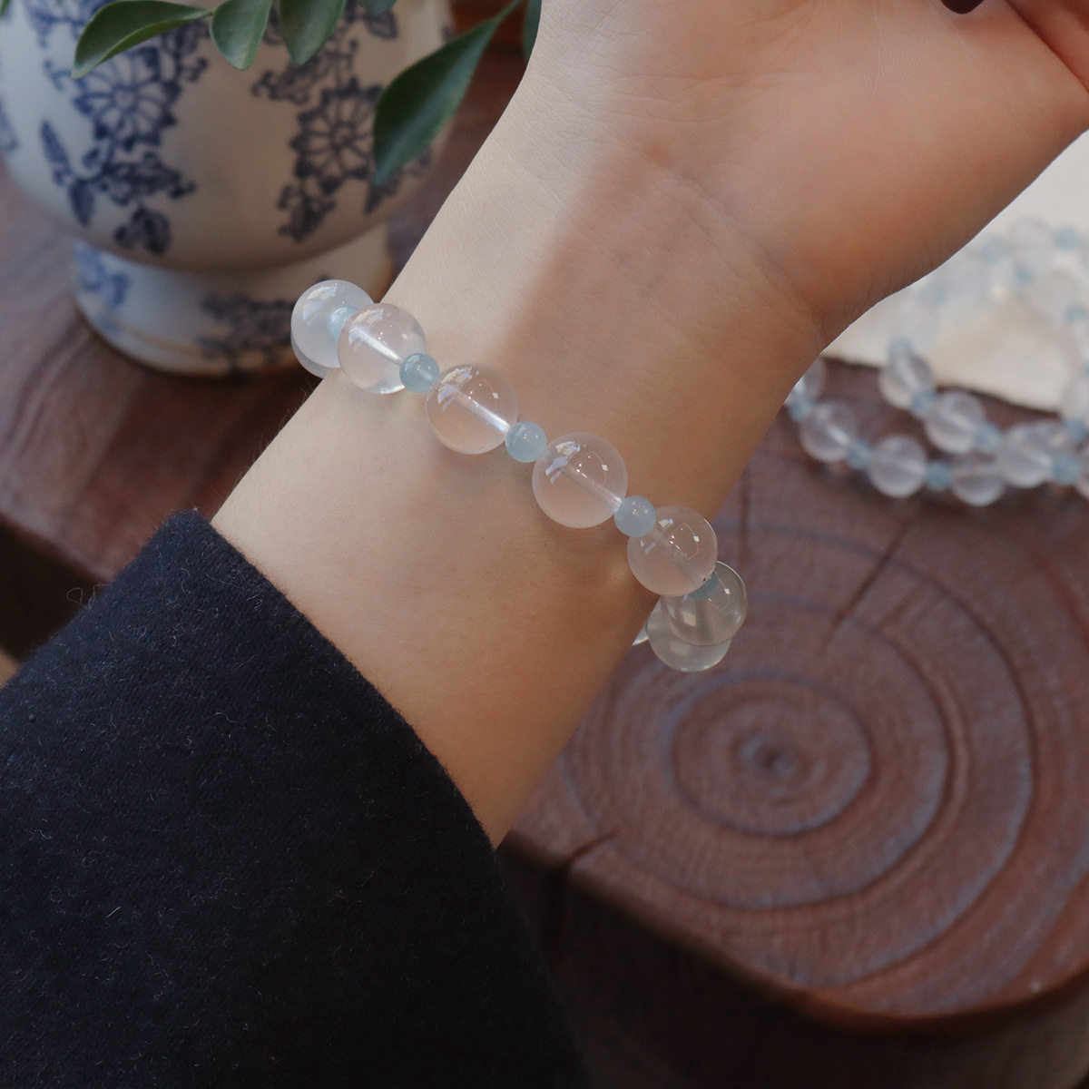 爆款原创设计天然奶白水晶手串清新海蓝宝手链高级感设计简约手饰 - 歡喜珠宝首饰STUDIO