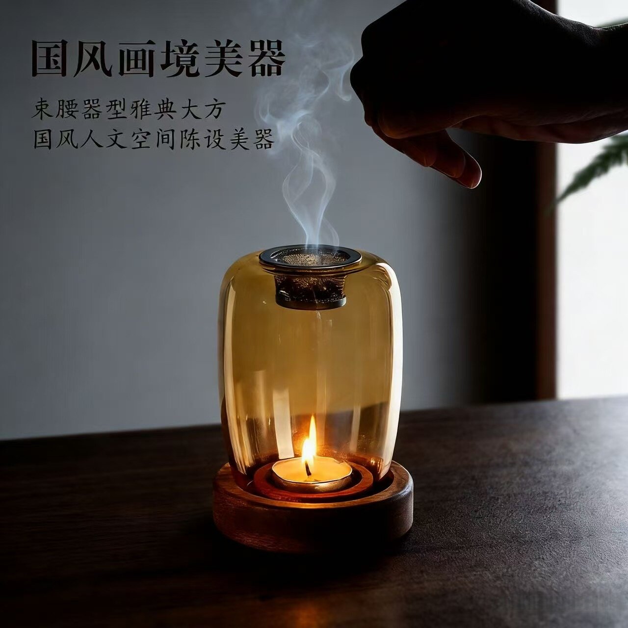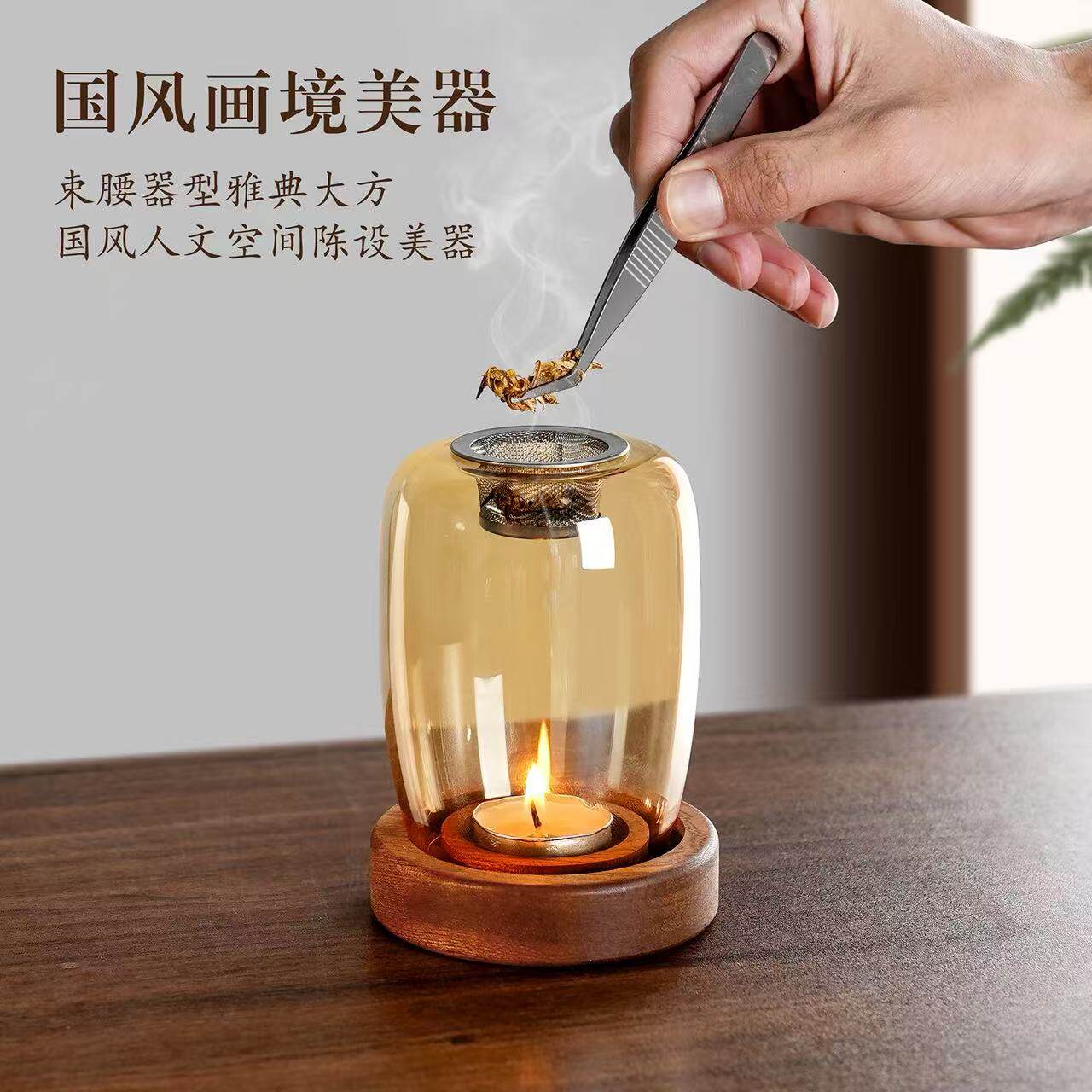 家用琥珀色琉璃香薰炉茶道氛围灯茶桌摆件茶具配件复古隔火香炉灯 - HIGH吧酒吧用品