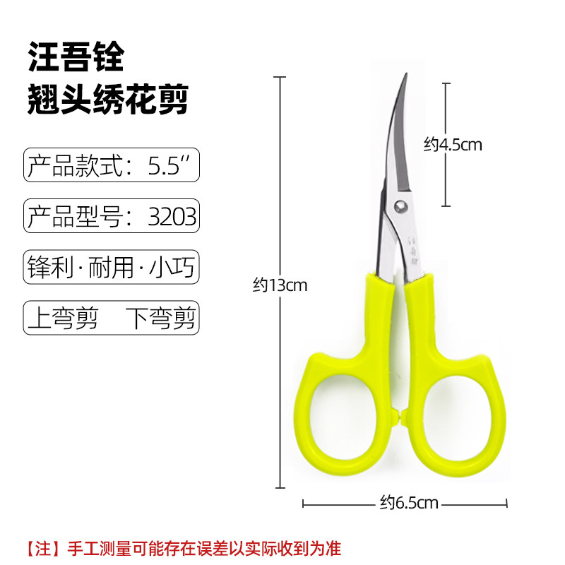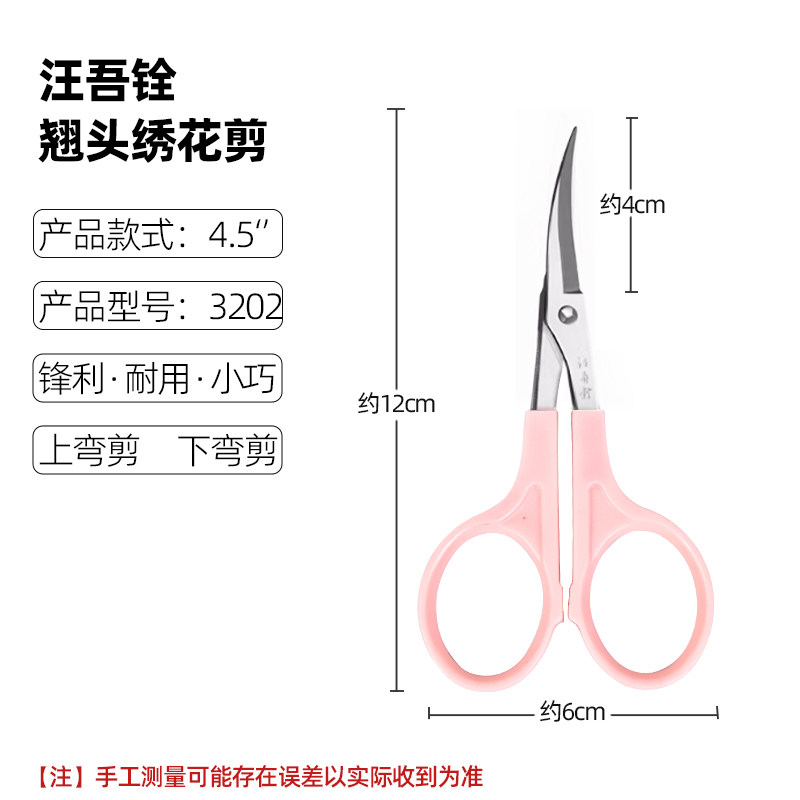汪吾铨绣花剪服装裁缝不锈钢翘头3.5/4.5寸十字绣剪刀刺绣弯剪刀 - 东莞骏益劳保超市