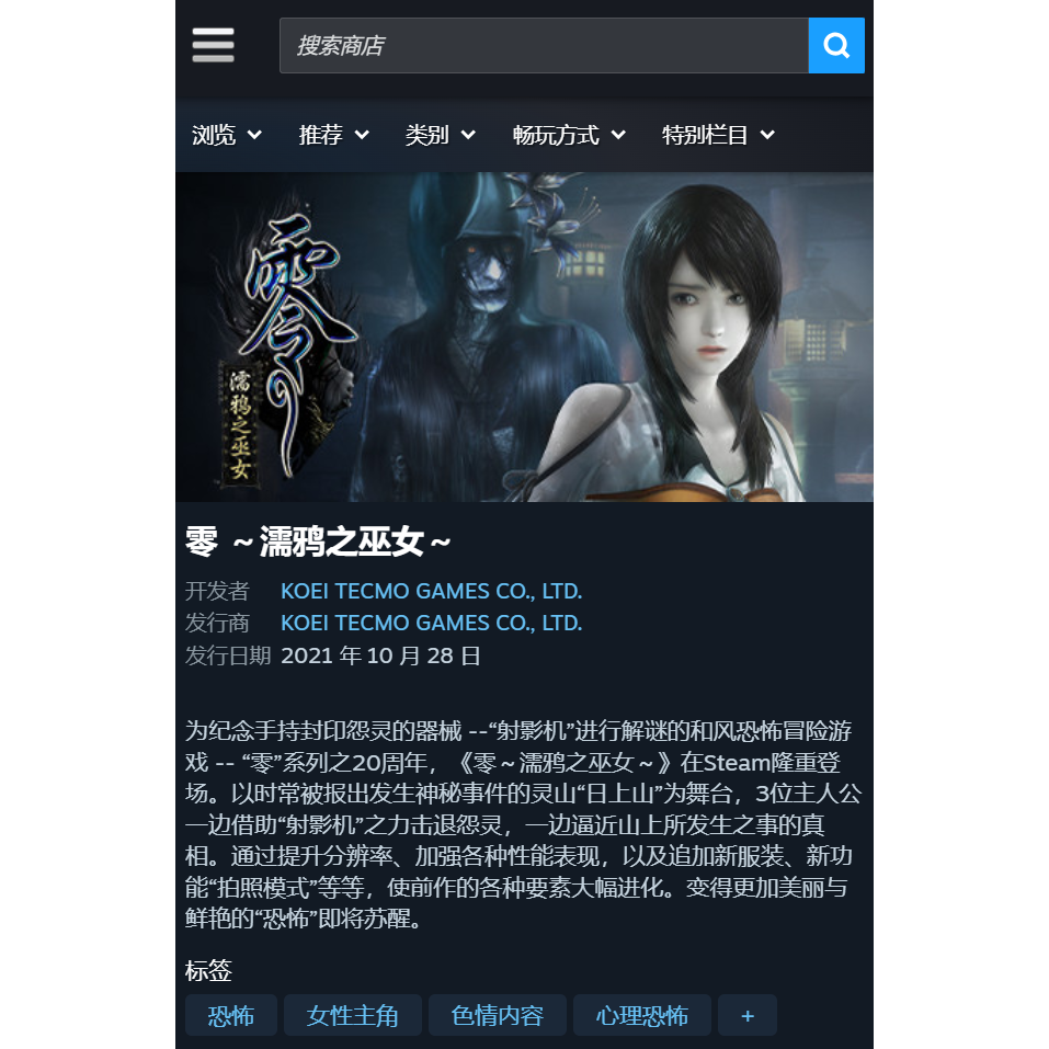 Steam正版 零濡鸦之巫女 Maiden of Black Water 国区激活码CDKEY - 青山电玩