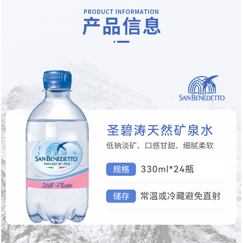 意大利进口sanbenedetto圣碧涛天然矿泉水高端弱碱性水330ml*24瓶 - SANBENEDETTO圣碧涛旗舰店