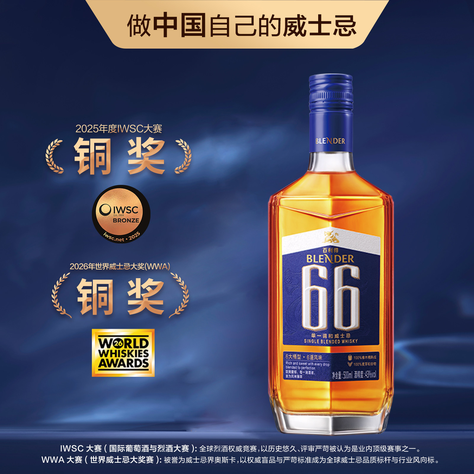 百利得崃州烈酒 66单一调和威士忌洋酒 送礼佳选 700ml - 崃州旗舰店