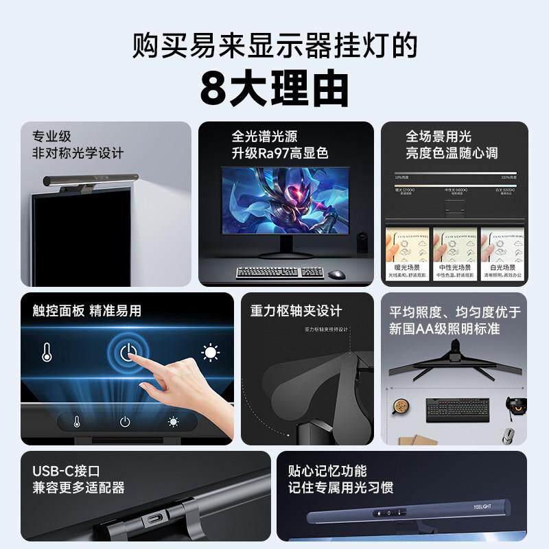 yeelight屏幕挂灯护眼灯显示器电脑补光工作学习宿舍显示屏台灯 - 小宋工厂店