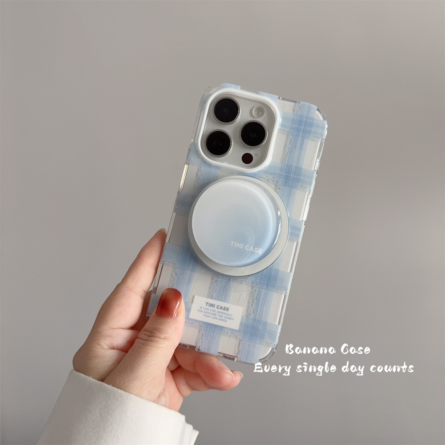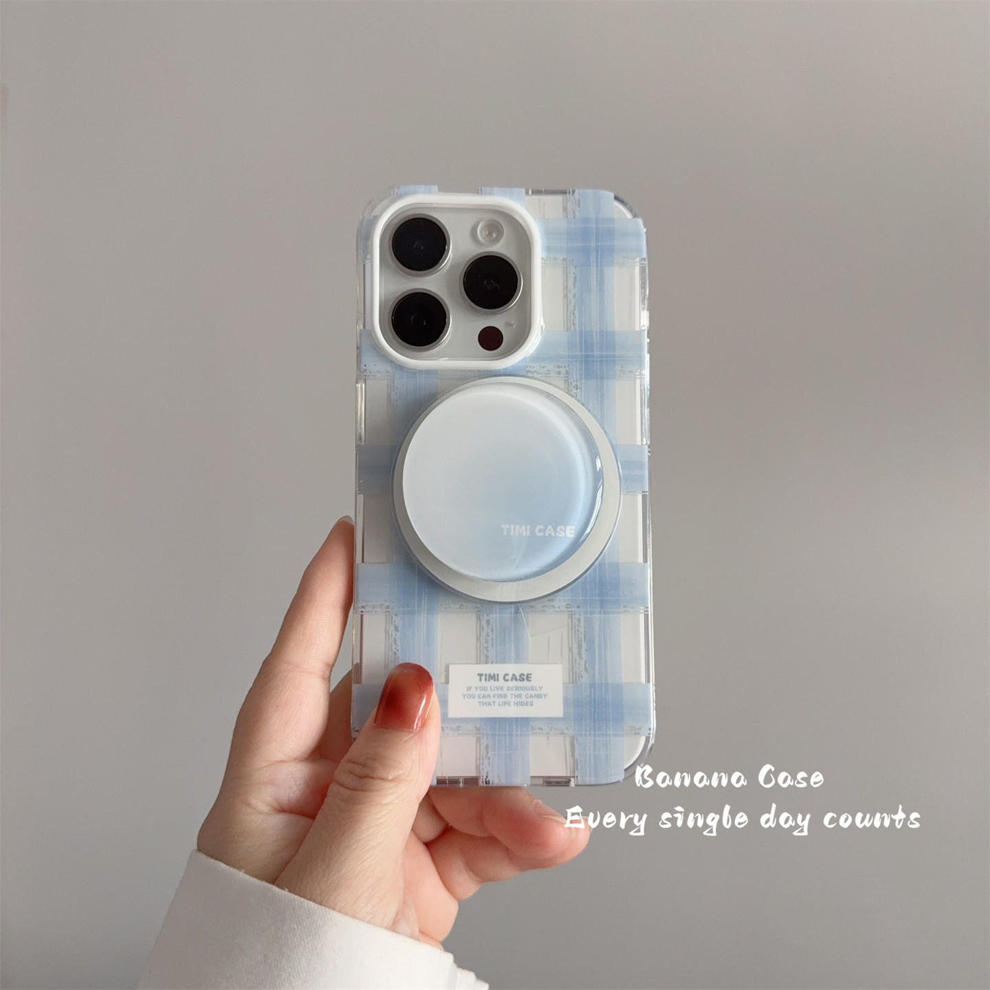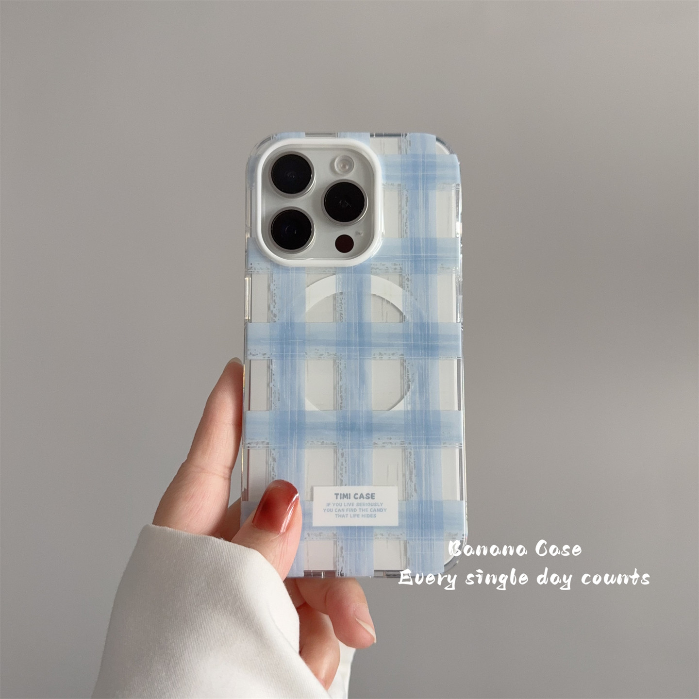 BananaCase韩系小众ins简约涂鸦蓝色格纹磁吸壳适用iPhone13苹果15promax渐变支架16pro光面14promax保护套16 - Banana Case