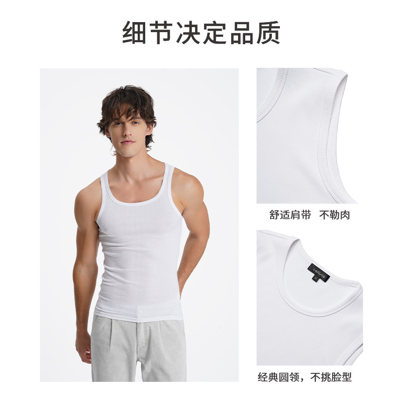 callisto2025夏男士无袖纯色高弹修身休闲T恤 - 银泰百货旗舰店