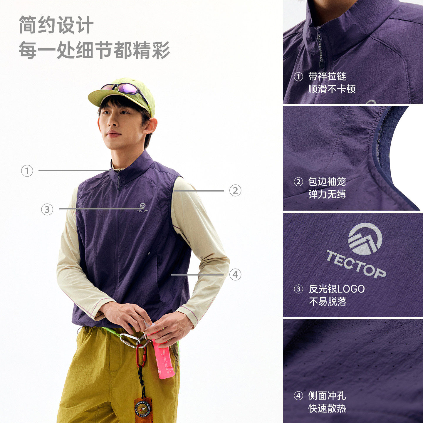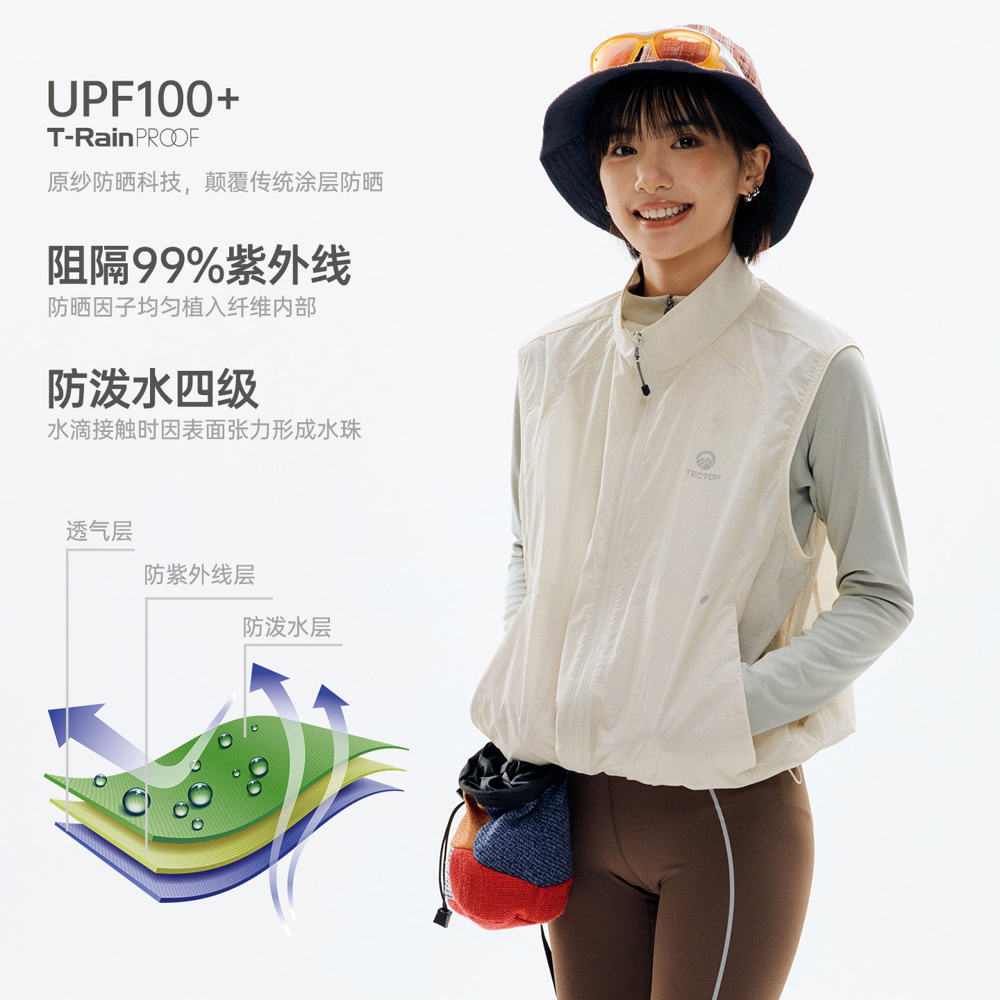 探拓户外防晒马甲男女UPF100+透气轻量机能风防泼水防风背心马夹 - 探拓拾六专卖店