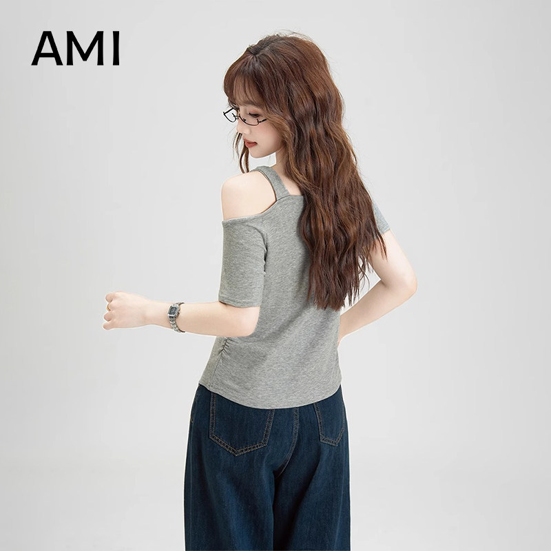 您的位置:安康生态农业开发平台  >   >  AMI官方 2026美式斜肩设计短袖T恤女春季新款正品字母印花修身上