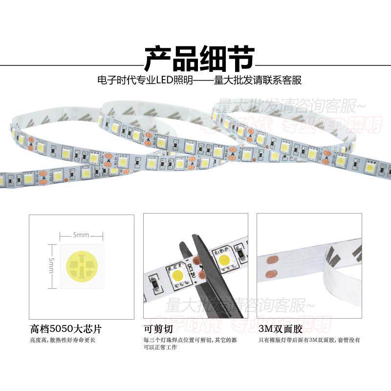 LED灯带12V伏冷白灯条5050贴片冷光软灯条套管防水冷白光照明灯带 - 半婵娟影维傅专卖店